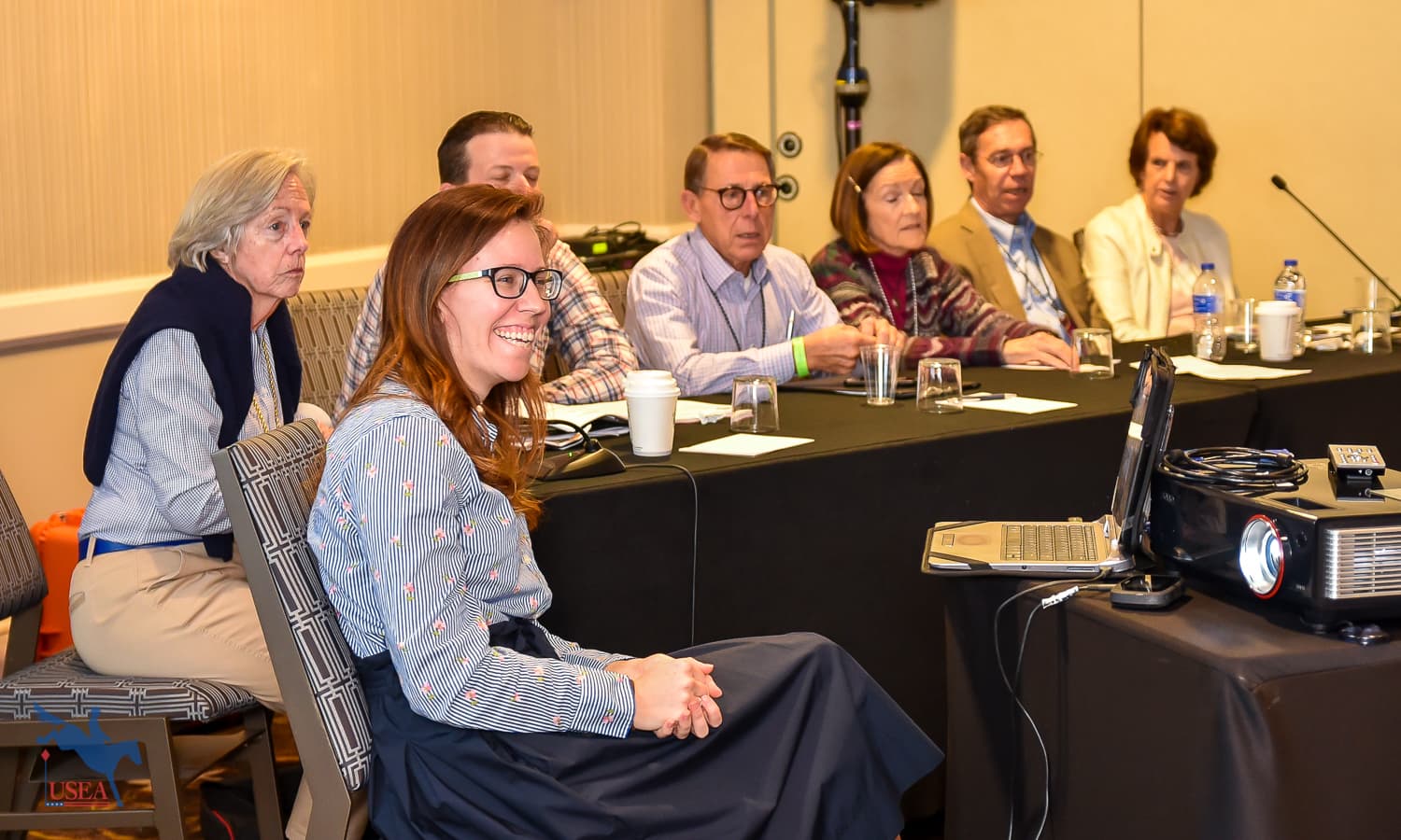 USEF Director of Licensed Officials Alina Brazzil led a presentation detailing the different types of licenses, the separate responsibilities of the USEA and USEF in the licensing process, and the requirements for obtaining the different types of licenses. Following the presentation, the session panel of Cindy Deporter, Sally Ike, John Michael Durr, Wayne Quarles, Loris Henry, Tim Murray, and Marilyn Payne fielded questions from the audience about training sessions and deadlines for 2019, where different resources can be found, and specifics about completing the licensing process.