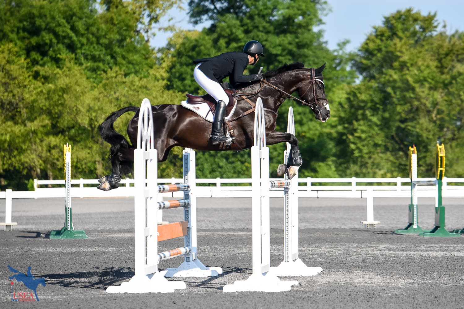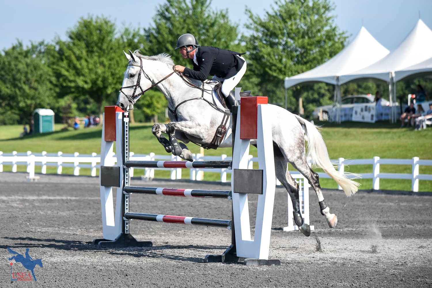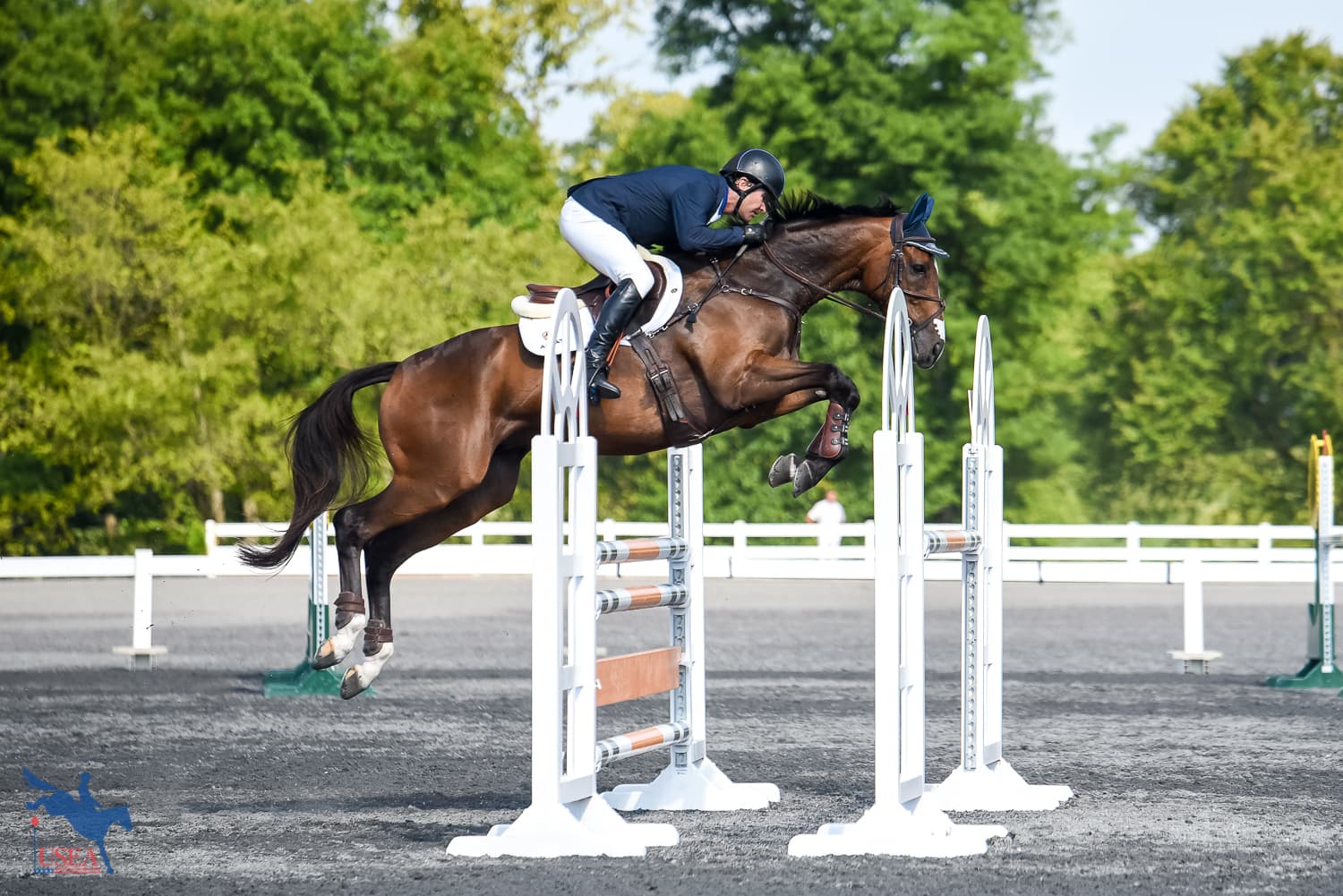 Doug Payne and Vandiver (Windfall x Visions of Grandeur), his own, Jessica Payne, and Debi Crowley’s 15-year-old Trakehner gelding, picked up 2.0 time faults across the country to add to their dressage score of 29.4 to finish in third place on a score of 31.4. Vandiver is Payne’s direct reserve horse for the Pan American Games.