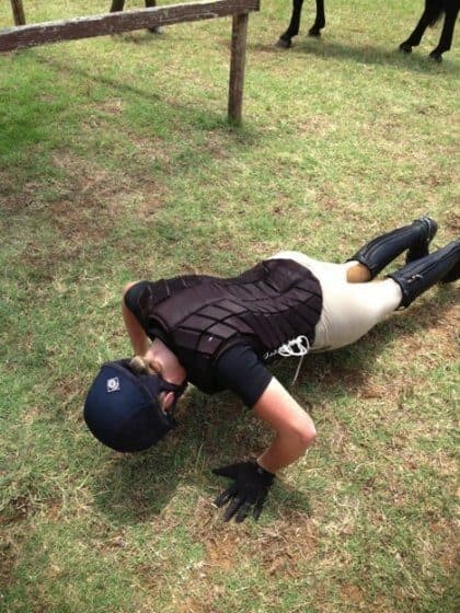 Carston Meyer, the show jump course designer, built the course with Young Riders in mind, which resulted in some interestingly challenging questions including long distances to short combinations. All of the Young Riders showed that they meant business, putting in stellar rounds. Avery Klunick and In It To Win It had quite a great round at the beginning of the division, showing everyone else how to ride it. A few problems sprouted up in the Junior Riders’ show jump rounds, but overall the riding was still quite good. The show jumping test most definitely required a fair bit of riding and a good, forward rhythm, and most of the riders rose to the challenge. Tragically, that night, Mary Frances and I suffered an unfortunate injury. I would not suggest riding with no hands on a moped to anyone ever again. Other than a few scrapes, and our pride going down the toilet, we were fine as we were only going at a walking pace. It was actually quite embarrassing because all we needed to do was put our feet down. I never said I was the brightest crayon in the box. It provided great entertainment for those around us….although not as much as Jon Holling provided in Bromont! Go Jon!!