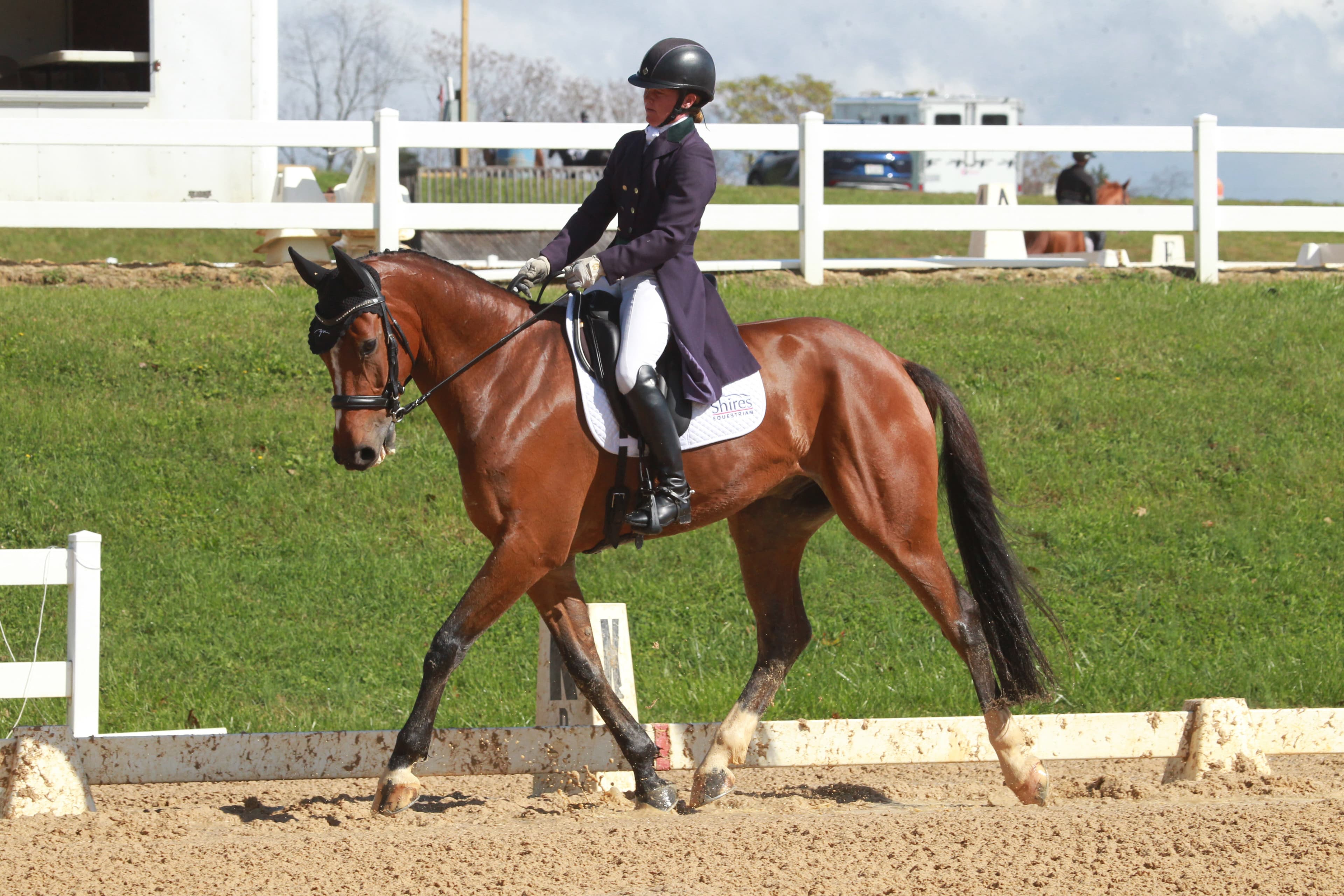 Based in Somerset, VA, Emily Beshear has taken the lead in the USEF CCI2*-L Eventing National Championship with her own Plumpjack (Pablo - Arrebol Babilovia), scoring a 23.9 in the first phase of competition. This is the second CCI2*-L start for the 7-year-old Westphalian gelding, and Beshear said she’s concentrated on keeping him focused and confident as the weekend progresses.