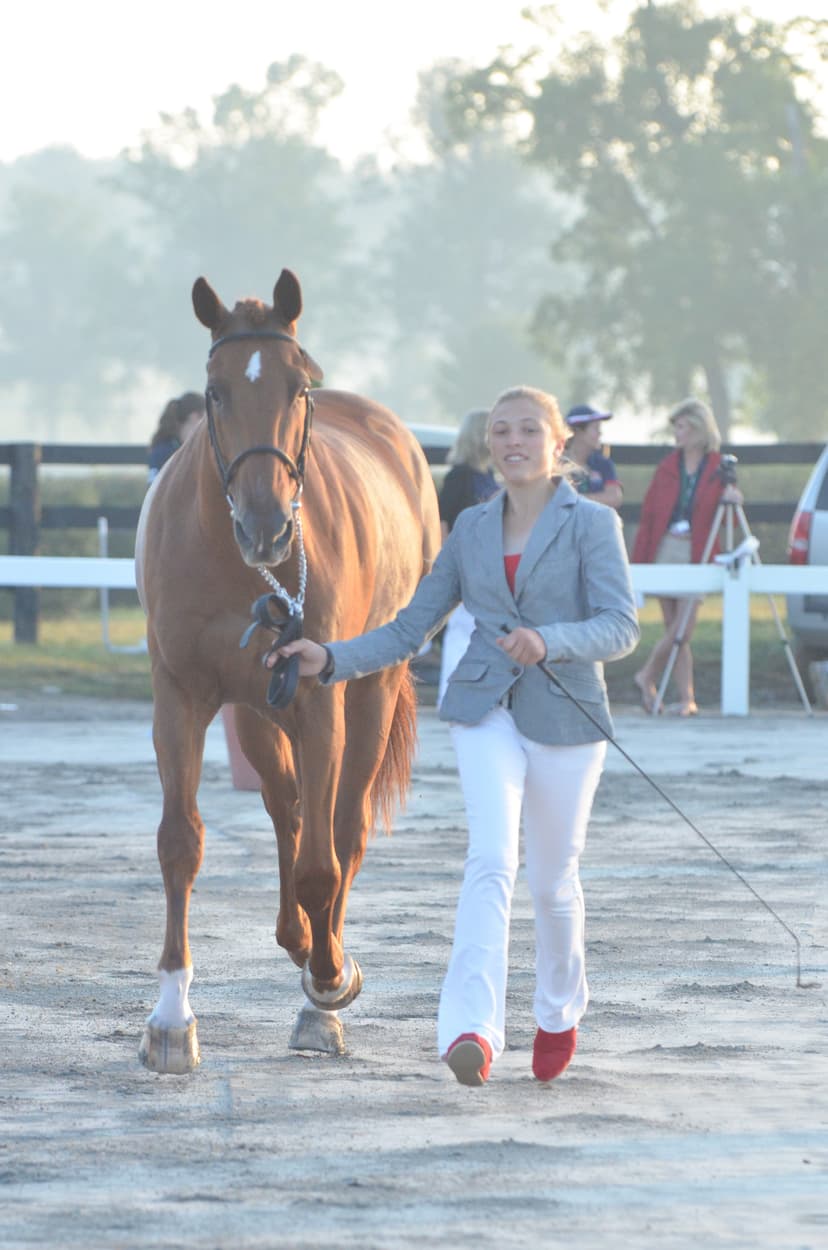 Competitors at the Adequan/FEI North American Junior and Young Rider Championships were up bright and early this morning for the final veterinary inspection. Horses and riders arrived at the jog lanes behind the Kentucky Horse Park steeplechase barn at 7:00, groomed and dressed in their best.