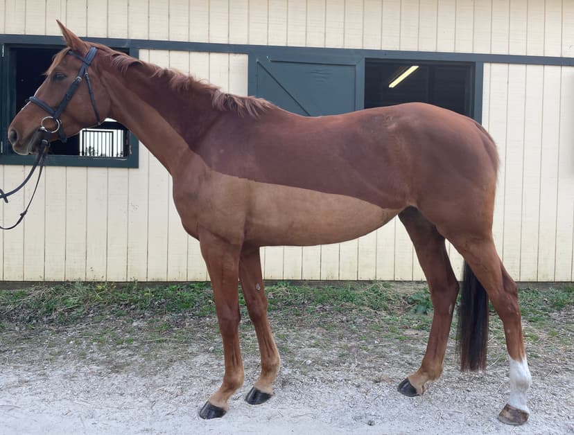 “This individual is all quality being full Thoroughbred,” Chris Ryan first observed about this 5-year-old off-the-track Thoroughbred gelding. “Some carry more refinement than others and this fellow is quite fine. He is short coupled. And, he is a lovely strong colour!”