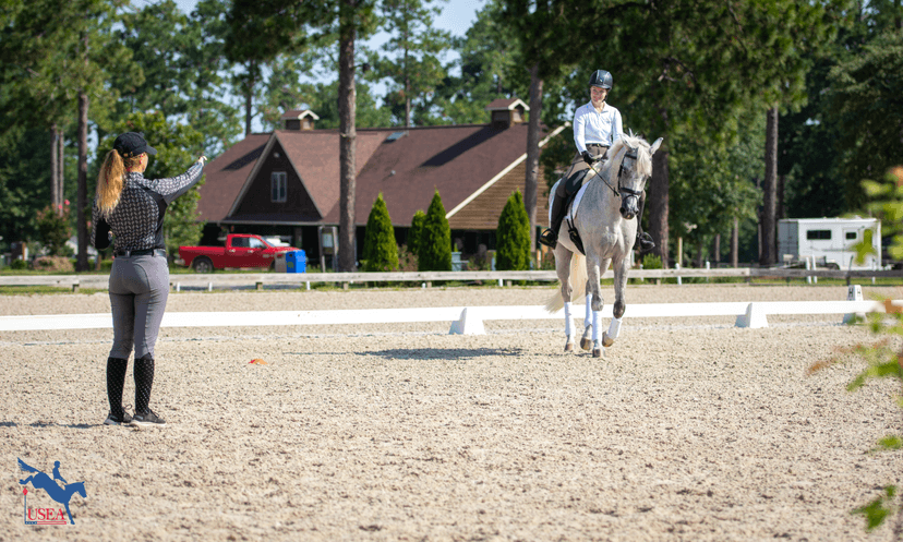 Emily Beshear encouraged riders to get creative and think outside the box on the flat in the first day of the USEA Emerging Athlete (EA21) East II Clinic. Twelve hand-picked participants worked with Beshear, a USEA Eventing Coaches Program (ECP) coach, at Stable View in Aiken, South Carolina.