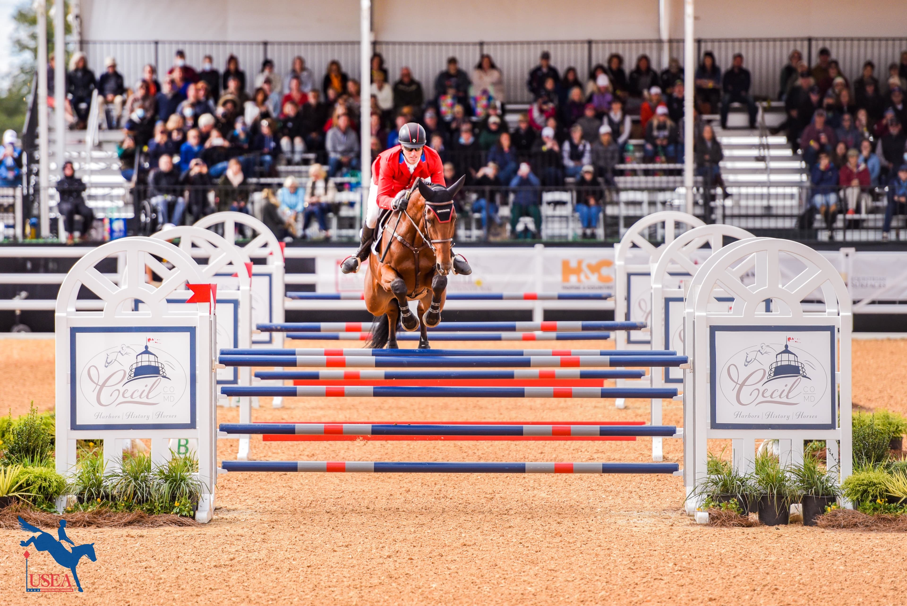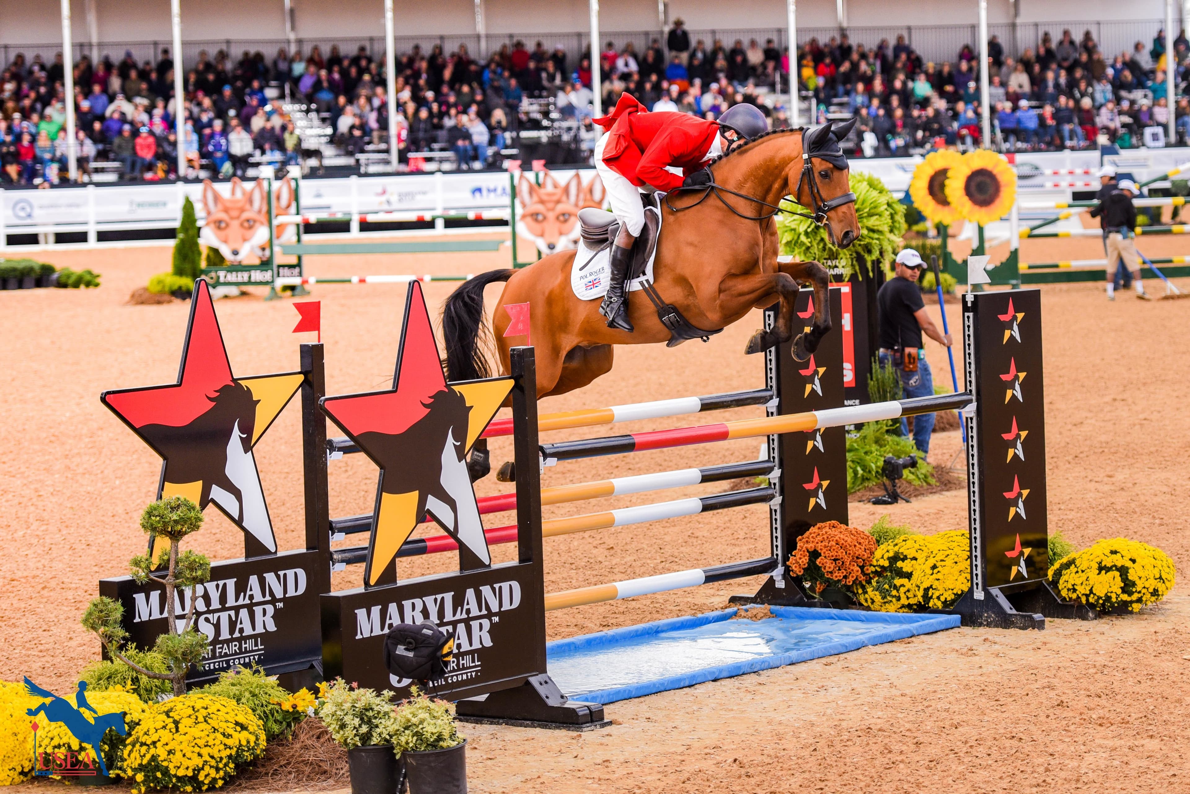 It all came down to overnight leader and Olympic Team Gold medalist Oliver Townend aboard Cooley Master Class (Ramiro B x The Swallow). Sitting on an overnight score of 21.1, Townend and Angela Hislop’s 16-year-old Irish Sport Horse gelding seemed to have a solid lead above his competitors and the stands were silent as Townend jumped the first three fences. But as the pole on fence four teetered and then hit the ground, a gasp could be heard in every corner of the stadium. The crowds erupted with murmurs as spectators came to the realization that Townend’s rail in show jumping had just launched Martin, who went into the final phase on a score of 25.0, up the leaderboard to the first-place position by just 0.1 points. Those murmurs turned to cheers when the announcers confirmed that Martin had just won the Maryland 5 Star. America finally had a victory on home turf and at a first-time event at that.