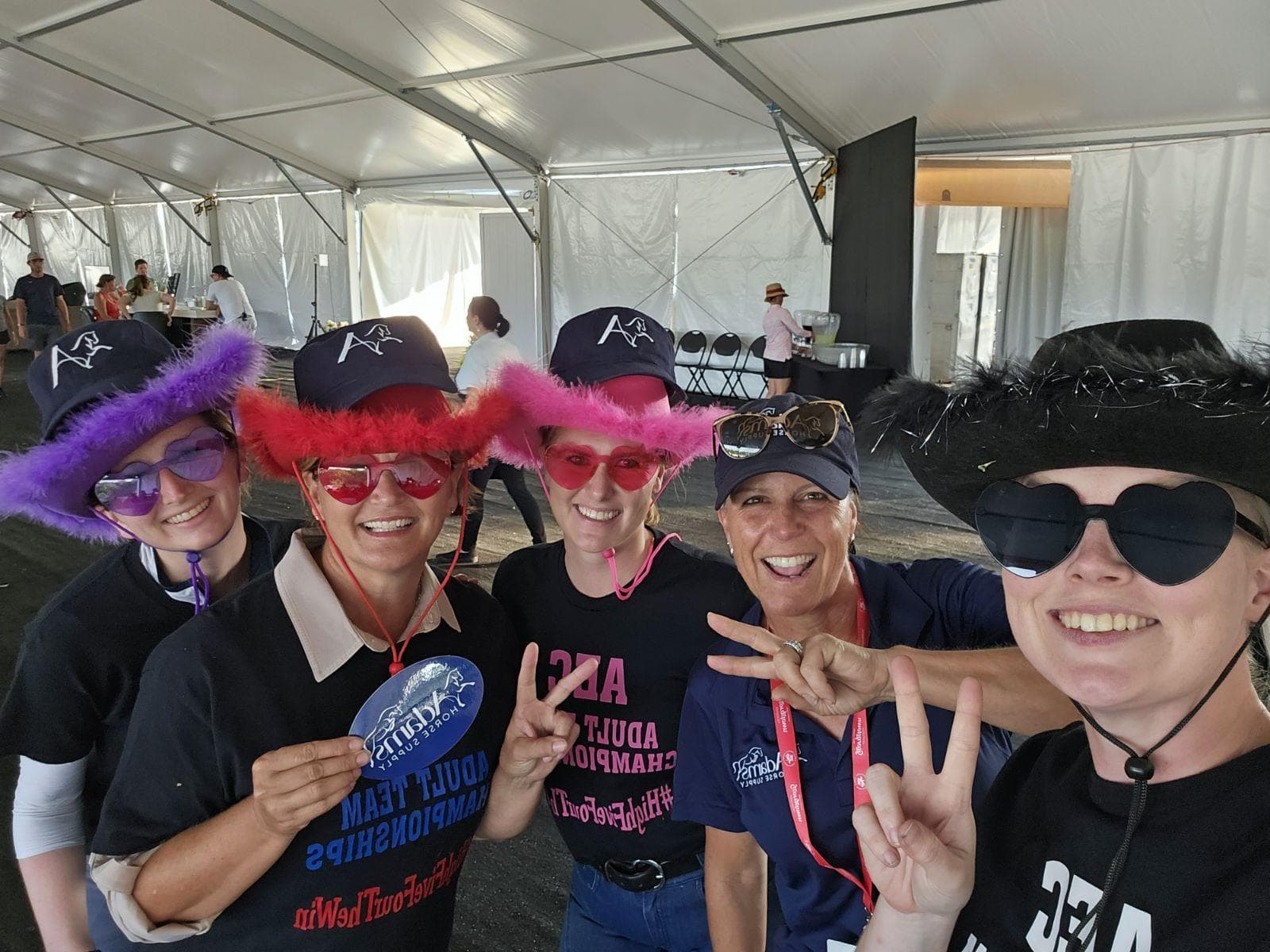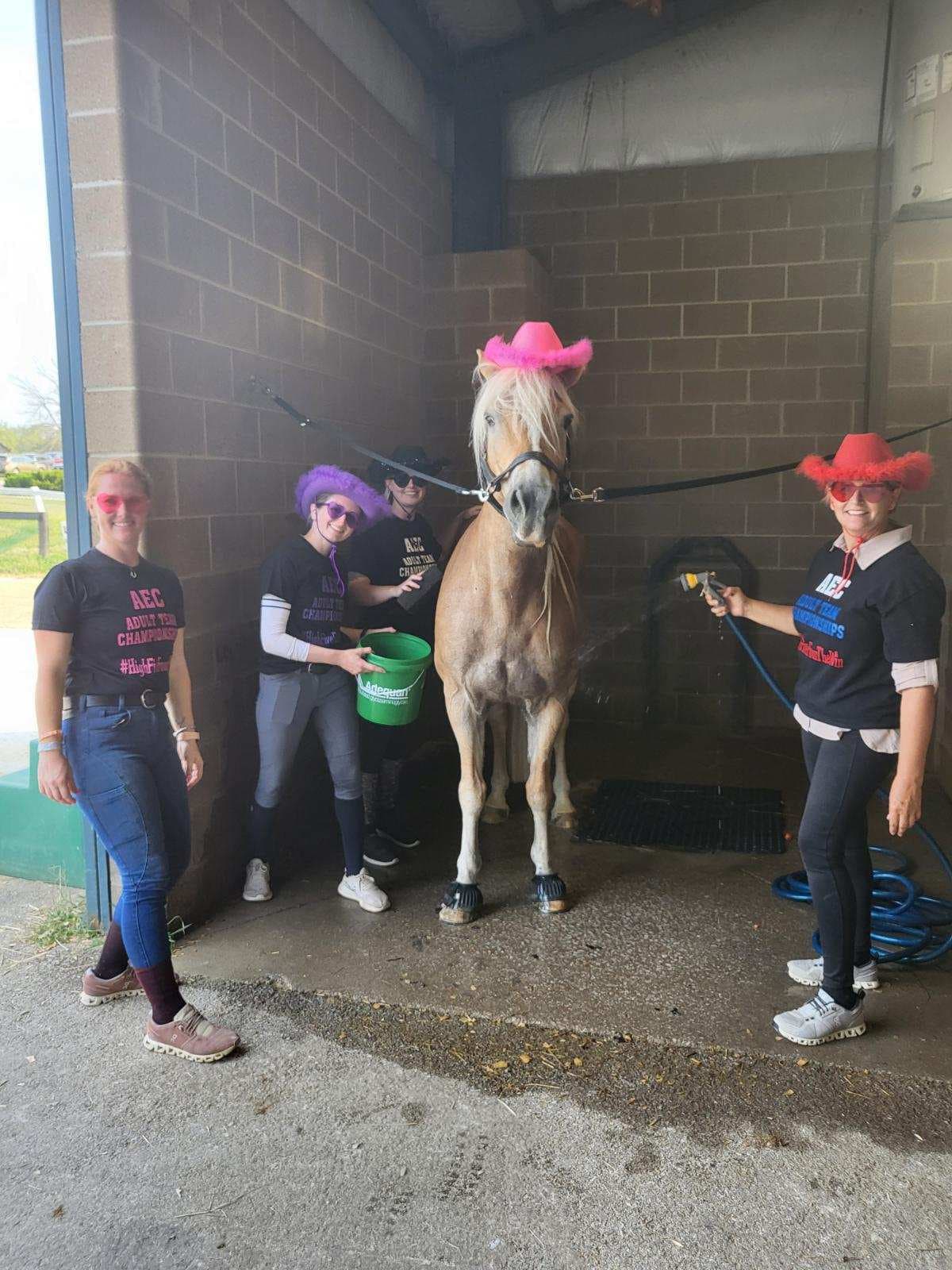 With so many amazing submissions, Adams Horse Supply has also decided to give a shout out to one more team for their submission. This year’s honorable mention, Hi-Five Four The Win, has members hailing from Areas IV and V and competed in the Beginner Novice ATC. Amanda Rhodes, Grace Atkins, Emma Kane-Mikan, and Jennifer Enderlin sported matching t-shirts and colorful cowboy hats throughout the week as they competed towards a top-10 finish in the Beginner Novice ATC.