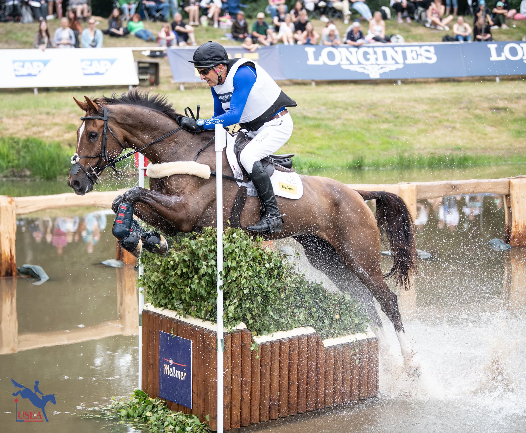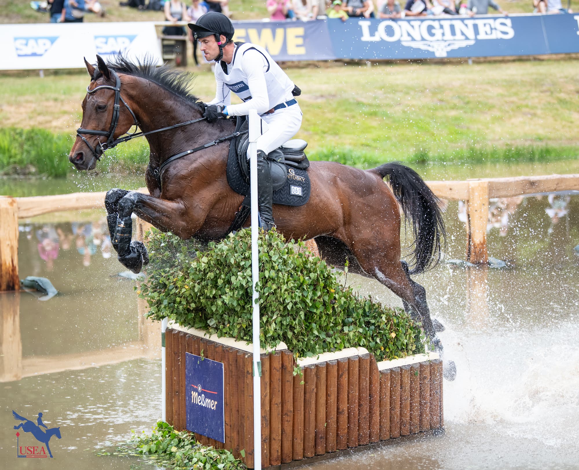 “He was traveling like a champion, and I really screwed up,” he admitted. “I was flying around the course, and he was giving me a fantastic ride to every fence, and I turned up really tight to the jump and got a very holding, backwards, deep distance to part A, which in hindsight I wished I’d took my time and placed him better. I got him underneath the rail into the water, and then I landed steep and it was a forward three strides, and I tried to do four strides. I don’t know why I did it. It was a horrendous mistake on my part, so apologies to ‘Thomas’ and his connections, because he really didn’t deserve that ride. He made easy work of the course.”