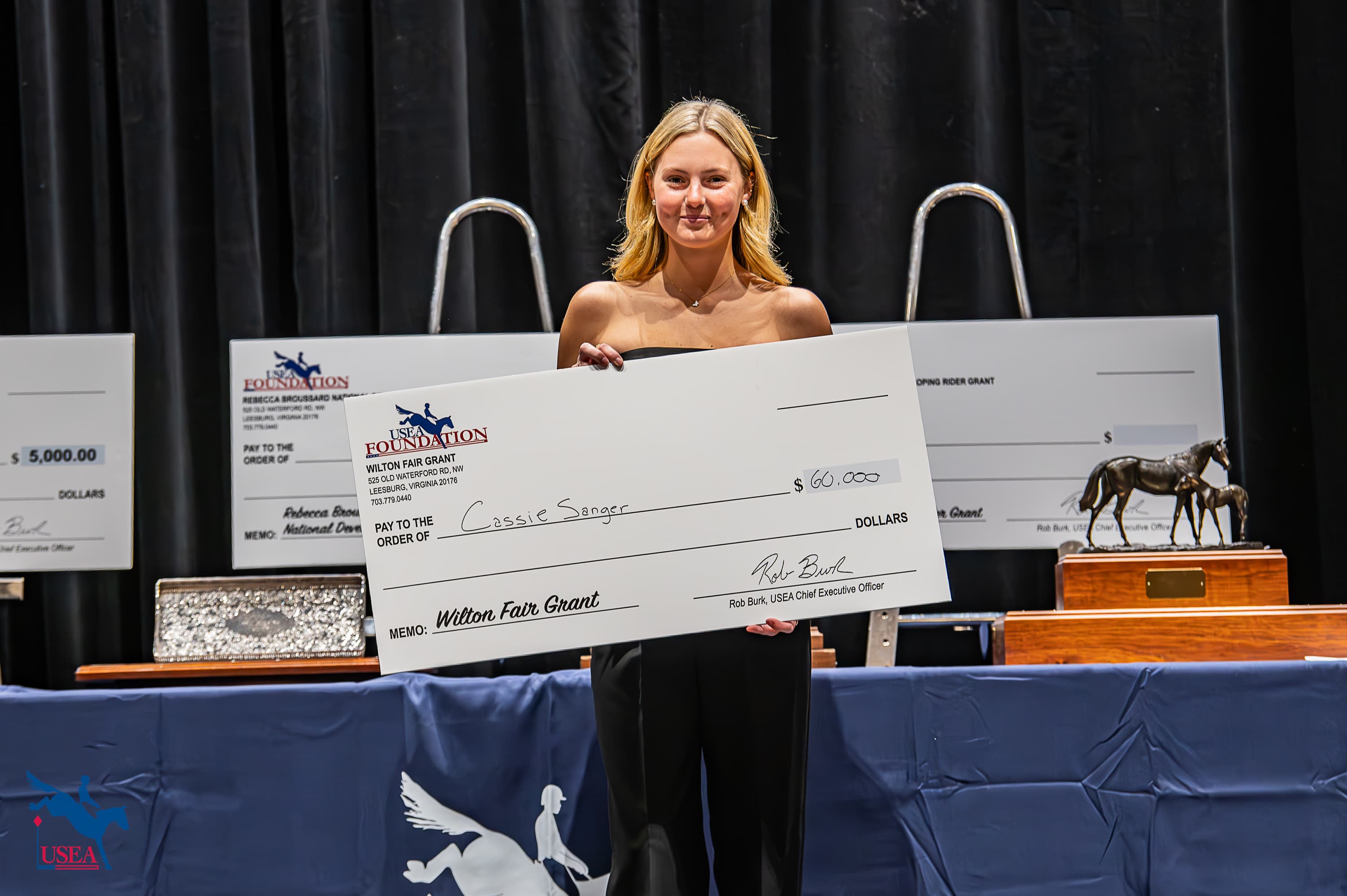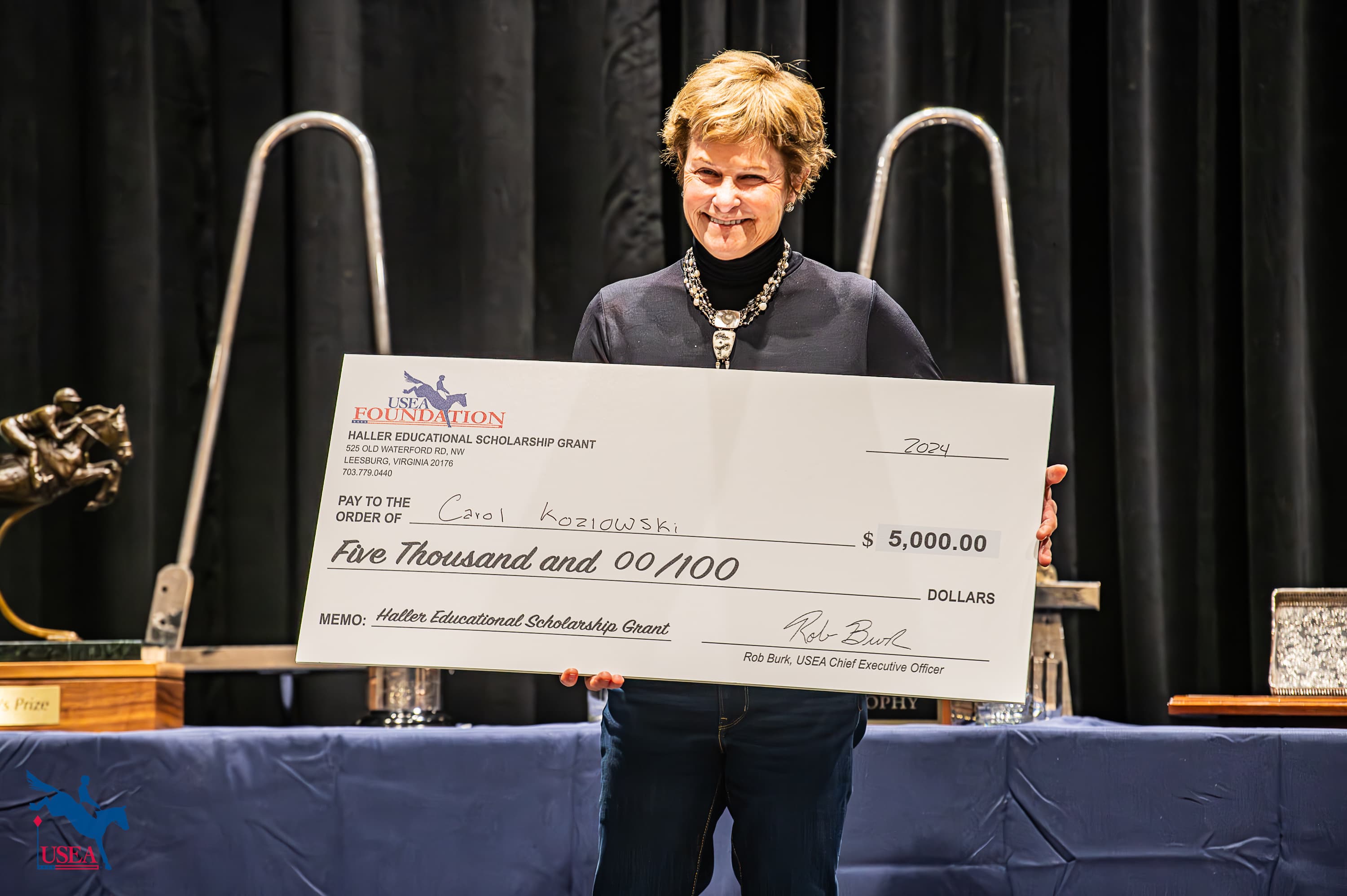 Sharyn Antico came on stage next on behalf of the American Horse Trials Foundation to present their inaugural “Chasing The Gold” Grant.