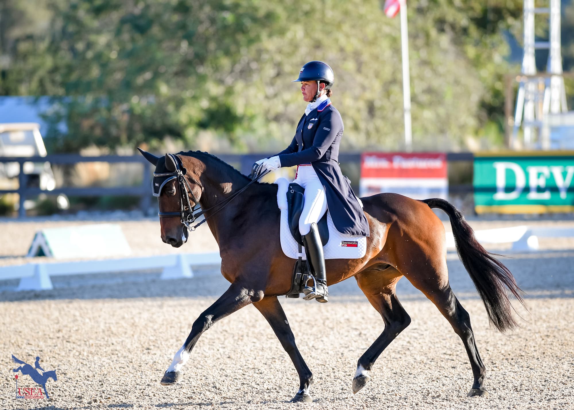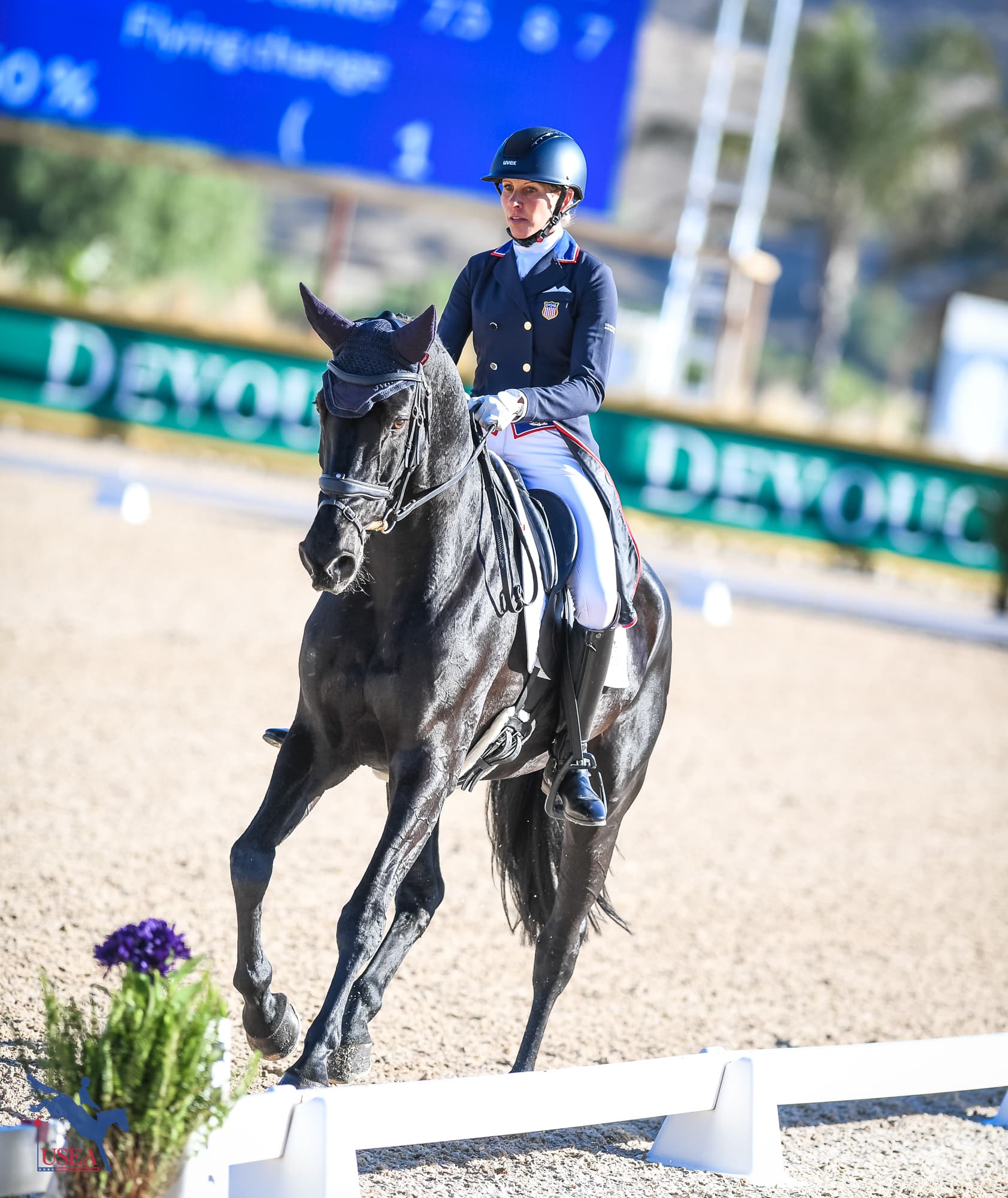 Temecula, Calif.—Nov. 2—Just four days ago, Liz Halliday was standing on the podium in Santiago, Chile, with a team silver medal around her neck.