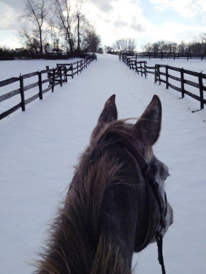 From Caitlin Silliman in Cochranville, PA: “The winter months are one of my favorite times to work with young horses, as well as focus on weaknesses I feel my upper level horses may need to improve upon next season. The upper level horses in our program get a much-deserved vacation following their fall three-day events before being put into light work to get ready for the upcoming year.