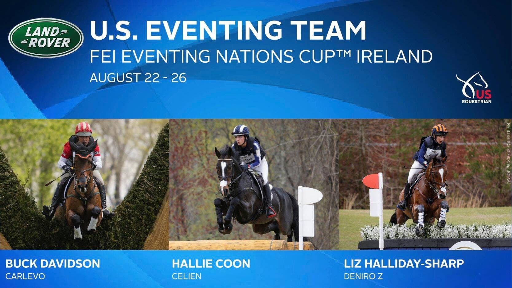 Co Cork, Ireland – With some challenges and a new Olympic format to contend with, The Land Rover U.S. Eventing Team persevered this weekend during the FEI Eventing Nations Cup Ireland at the Millstreet International Horse Trials, finishing fifth. Personal bests, injuries, and stellar cross-country efforts made their presence known among the U.S. team, but Buck Davidson, Hallie Coon, and Liz Halliday-Sharp rose to the occasion when the going got tough.