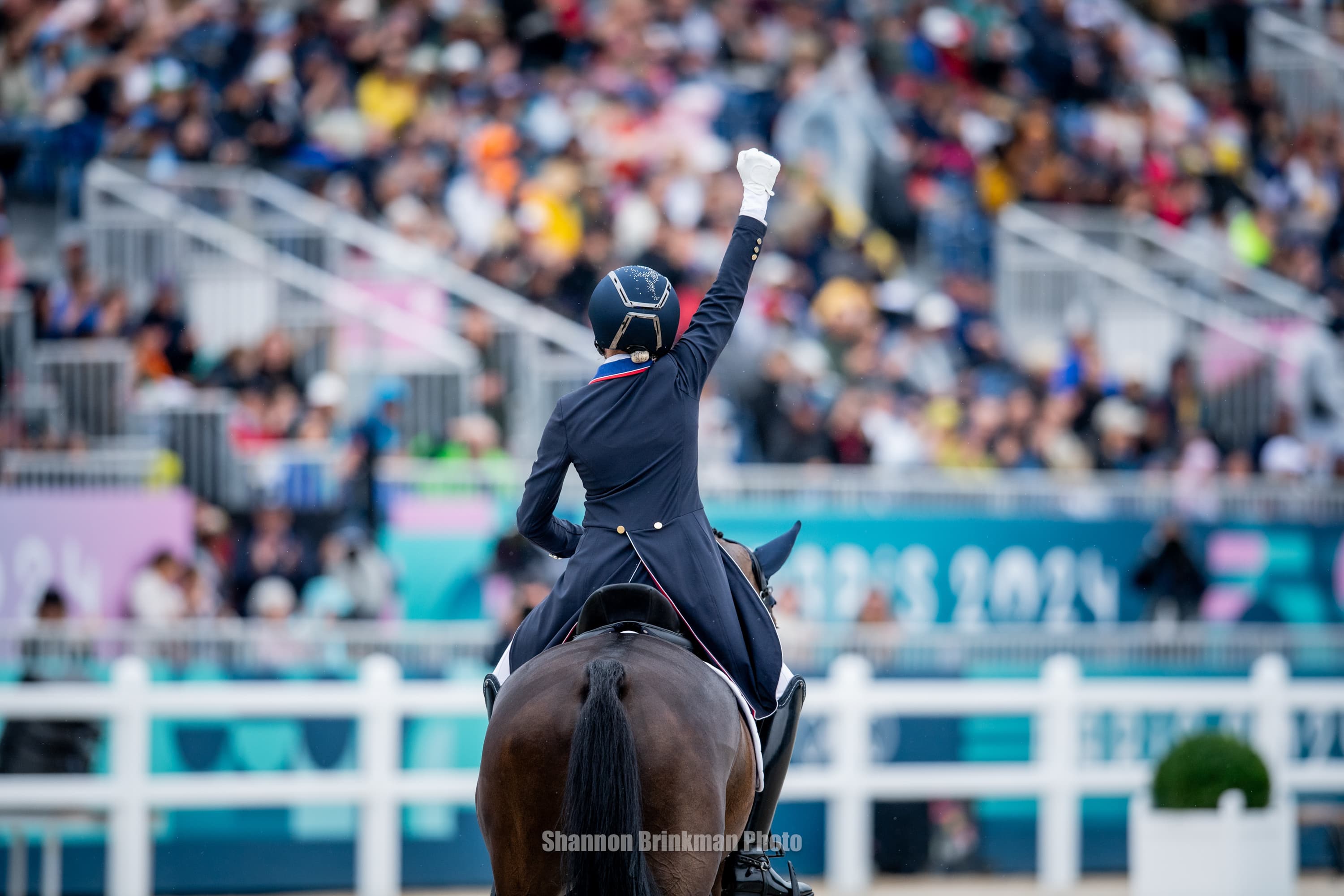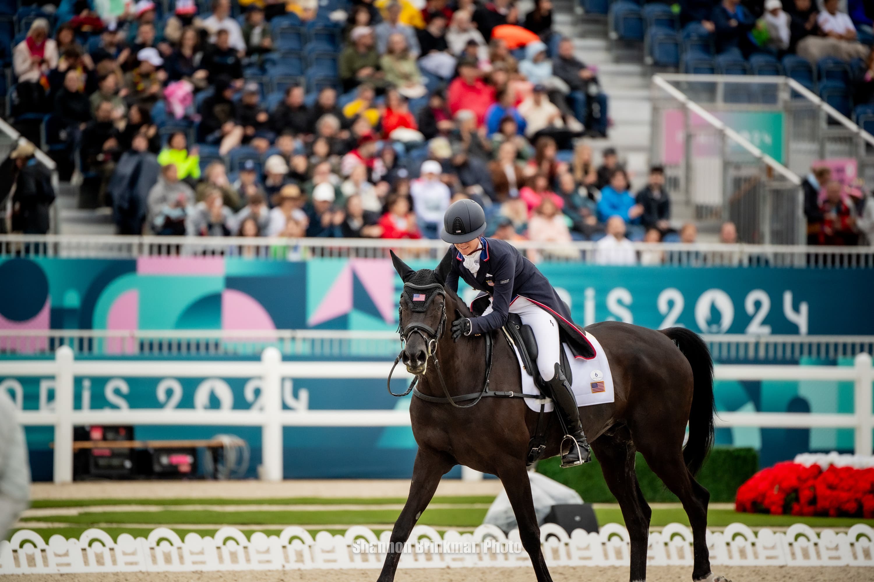 Paris, France—July 27— Following dressage at the 2024 Paris Olympic Games, Team USA sits in sixth place overall. The competition was tough, the atmosphere was electric, and the test challenging, but all-in-all each rider was full of nothing but praise for their equine partners and a positive outlook going into cross-country tomorrow.
