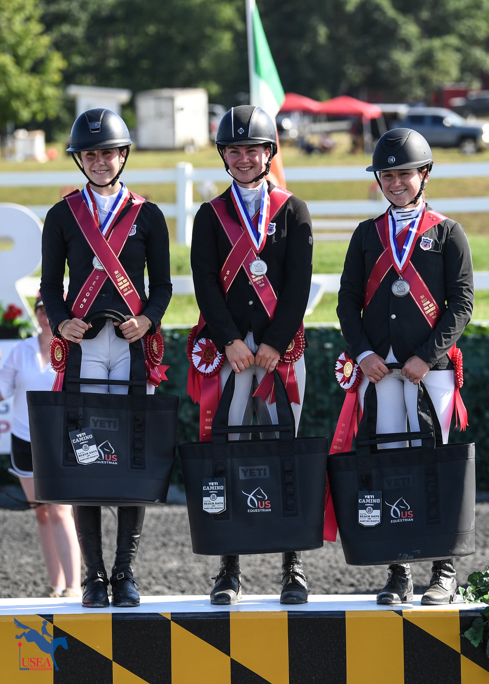 The combined team from Areas I, VII, and IV (Lizzie Hoff and HSH Limited Edition, Elizabeth Gill and Opportunity Knoxx, and Rebecca Roth and Chapter Two) finished with the silver medal. Hoff was the only one to show jump after Roth withdrew her horse before show jumping, and Gill retired on cross-country yesterday.