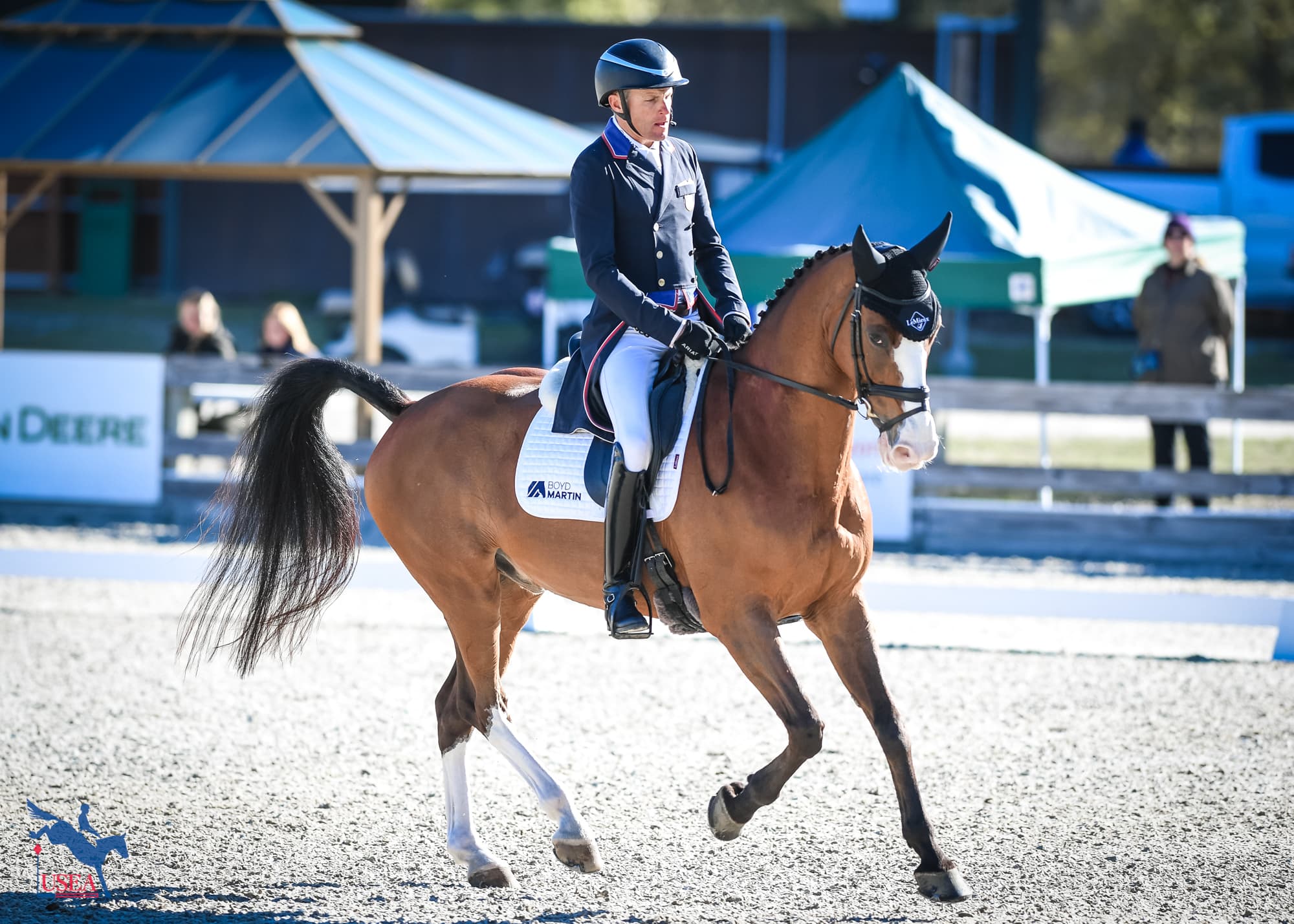 Aiken, S.C.—April 5—Boyd Martin has big aspirations for Commando 3 this year, including a trip to the Defender Kentucky Three-Day Event for the ultra-competitive CCI4*-S, and he’s off to a strong start this weekend at the Stable View CCI4*-S, leading the division after dressage and show jumping.
