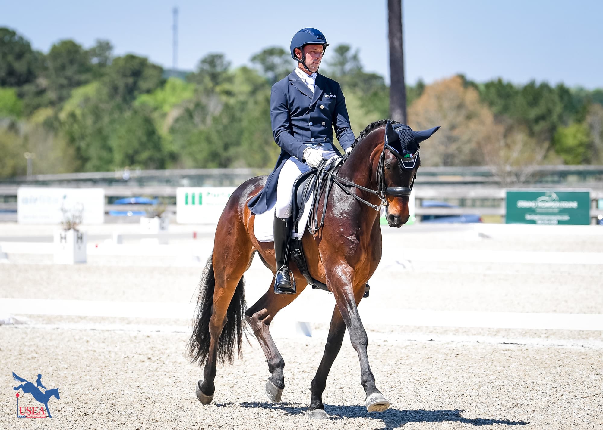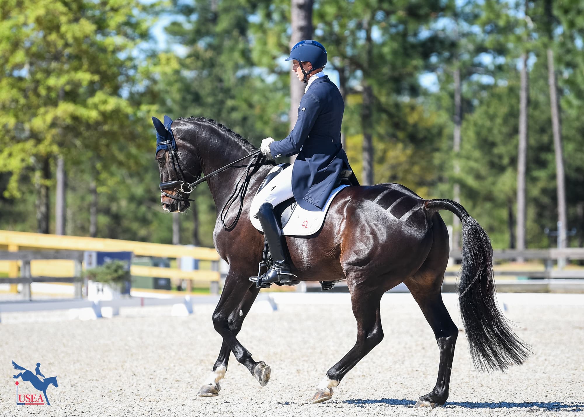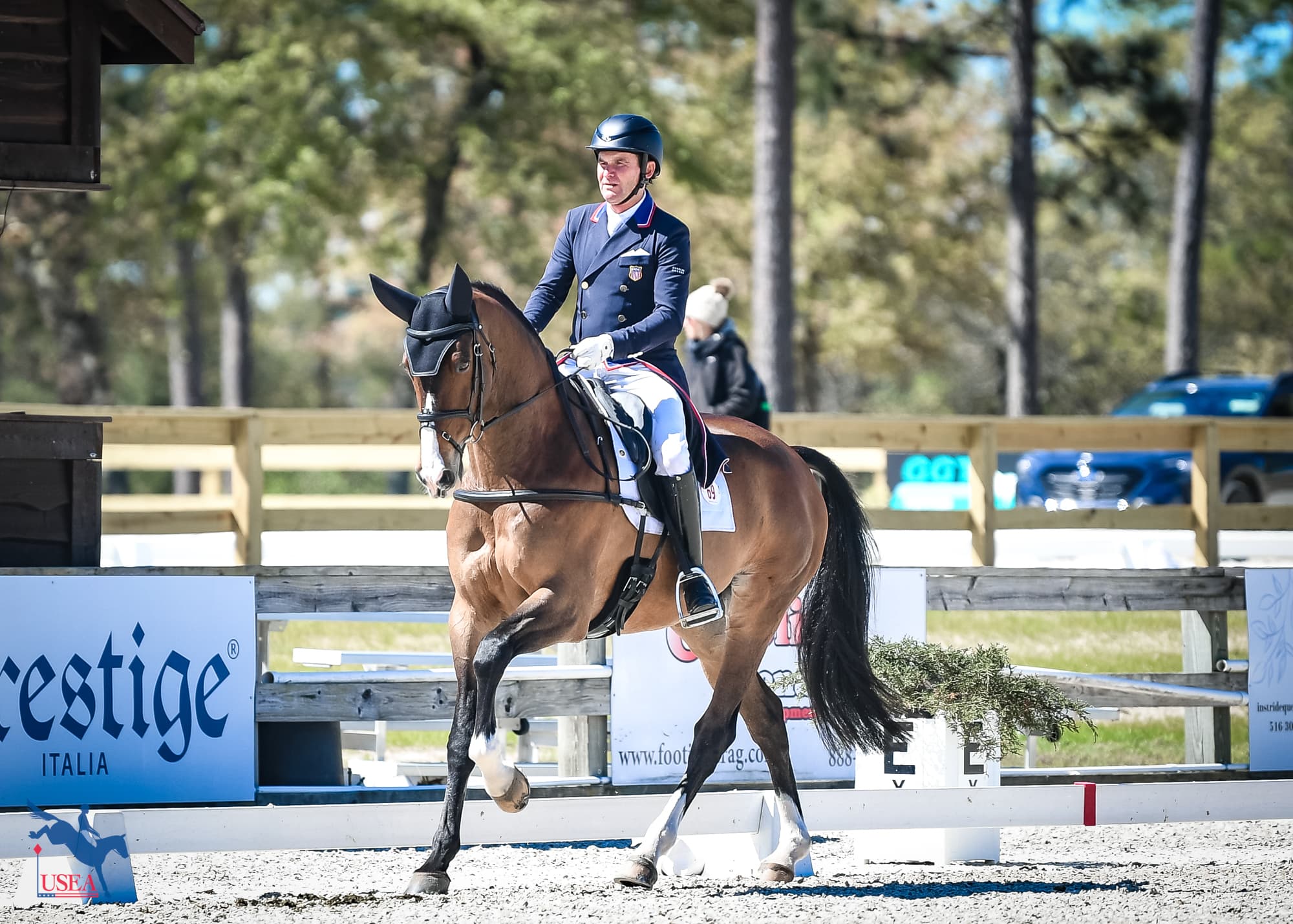 “I was really happy with him,” he said. “That horse really feels like he’s starting to get it. He did two excellent flying changes. He still at times feels like he’s trying too hard, and he lost his balance in a couple of places, but overall I’m thrilled with him. He’s a really nice horse. I’m looking forward to where he might be able to get to in a few months.”