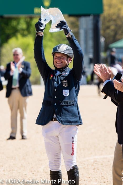 The 32-year-old German rider jumped a double clear round on FischerRocana FST on a day when rails were falling, many and often, to take the overnight lead from New Zealand’s Tim Price and Wesko. He also claimed third place on La Biosthetique – Sam FBW, who won the World Equestrian Games at the Kentucky Horse Park in 2010.