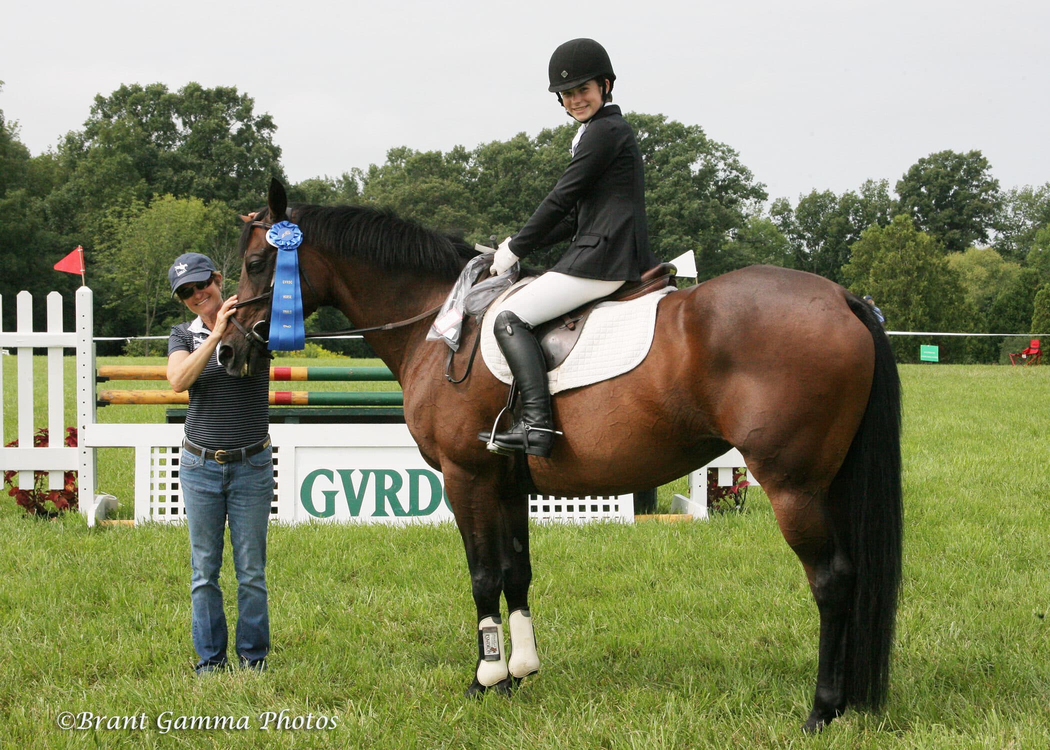 Finally getting to the neat part of the story! I told Patty and Cady that moving up using a Modified division was just what they needed. And . . . we just happened to be having one here in western New York in mid- August. At GVRDC, Cady and Erin were on fire, winning the dressage, scorching around the cross-country, and, with their one rail well in hand, won the division by a significant margin. I happened to be available to present the awards, donning my official "USEA President" hat and was delighted to pin the blue ribbon on the little mare that I bred and thought would only be a Novice horse. The really cool part is that the GVRDC event is held at Hideaway Farm, where Hideaway's Erin Go Bragh, Lookover Erin's sire, was bred and lived his 30 years.