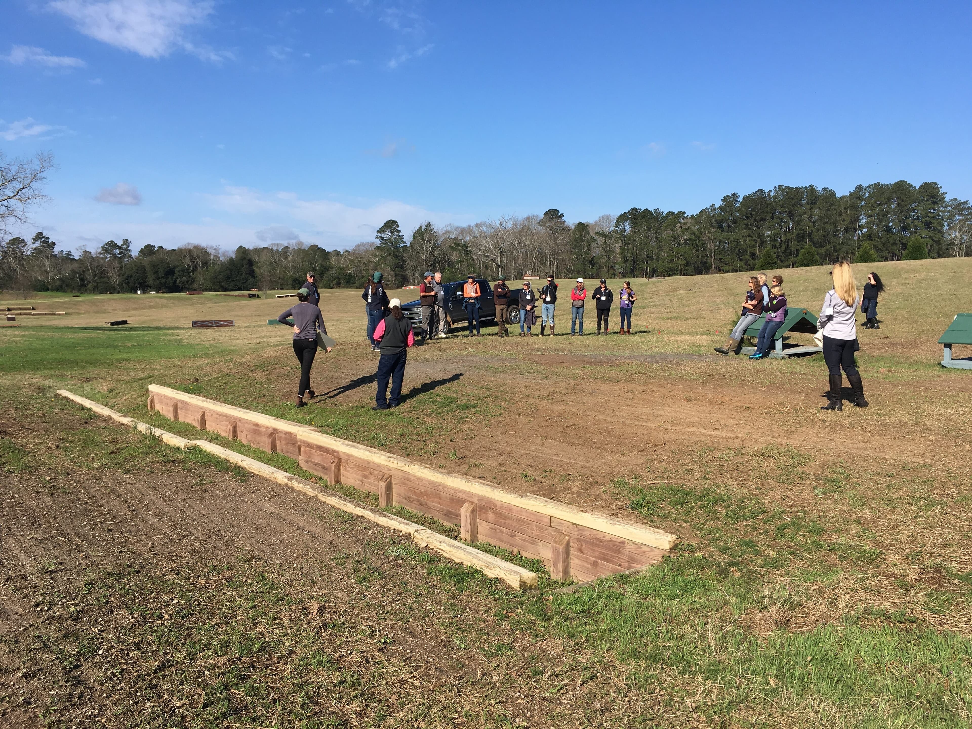 The next morning we met out at Paradise Farm to inspect and discuss what the course designers had worked on the day before. Each designer had come up with a cross-country element that was appropriate for Training, Modified and Preliminary levels to share. After presenting their designs, we as a group evaluated the designs. Our clinicians explained that, as officials, this was what we could expect to experience in our roles with course designers, TDs, and judges all working together.
