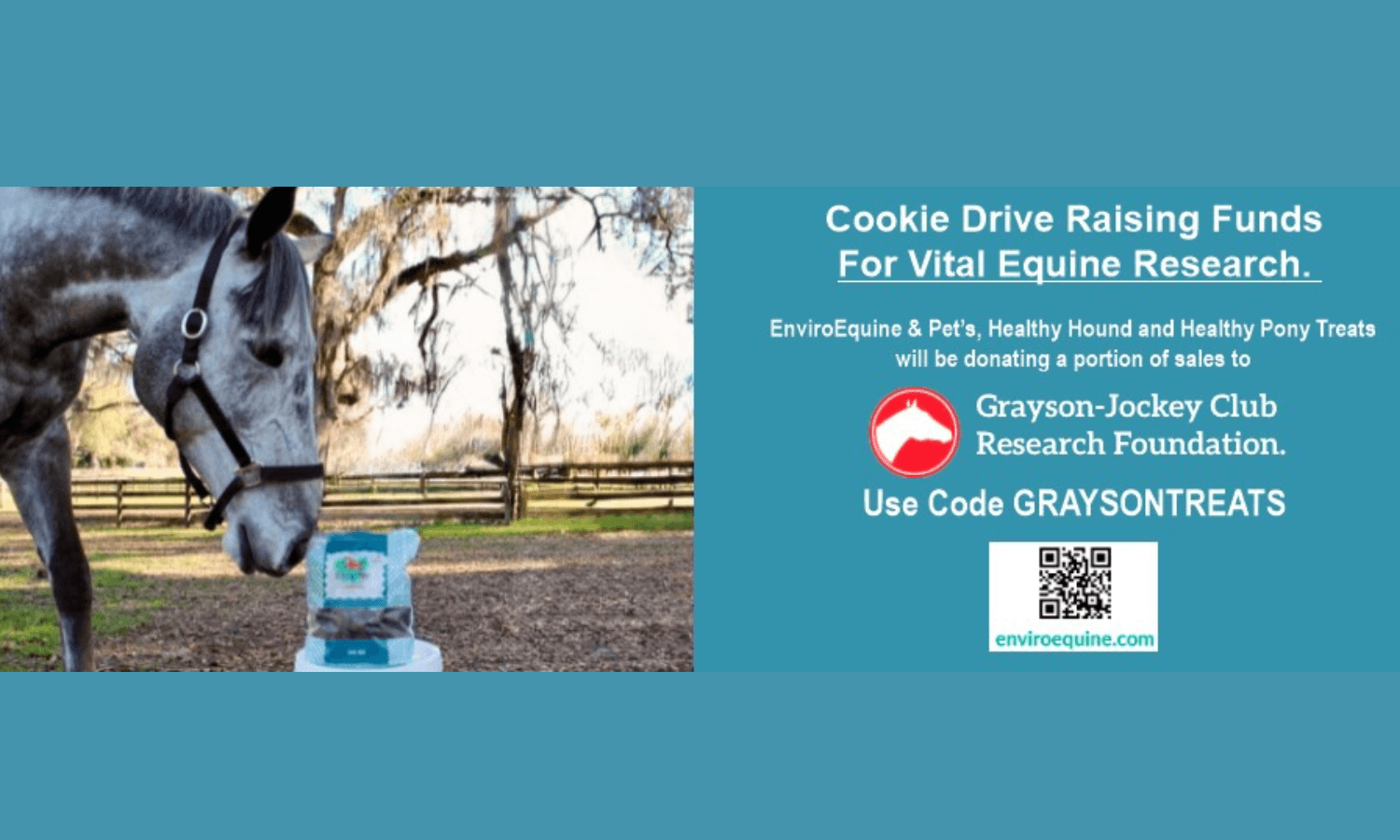Grayson-Jockey Club Research Foundation today announced a strategic partnership with EnviroEquine & Pet that involves an innovative online cookie drive aimed at raising funds for vital equine research. The collaboration features EnviroEquine & Pet's best-selling Healthy Hound and Healthy Pony treat lines, offering pet and horse owners a meaningful way to support equine health research while providing nutritious treats for their animals.