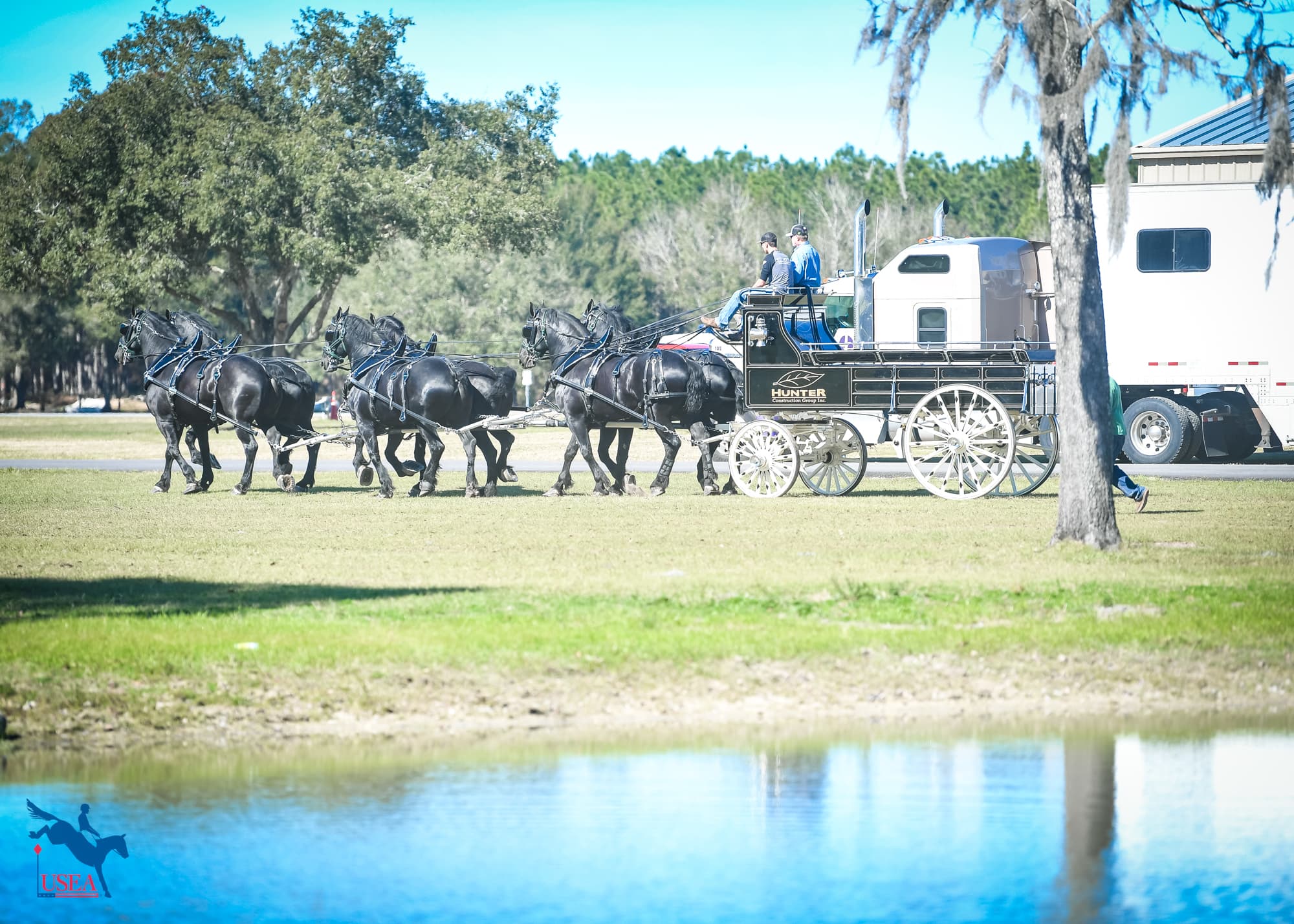 Lambrusco W was quite unnerved by a six-in-hand carriage, so ECP mentor coach Emily Beshear went right to work helping Alexander work him through his nerves.