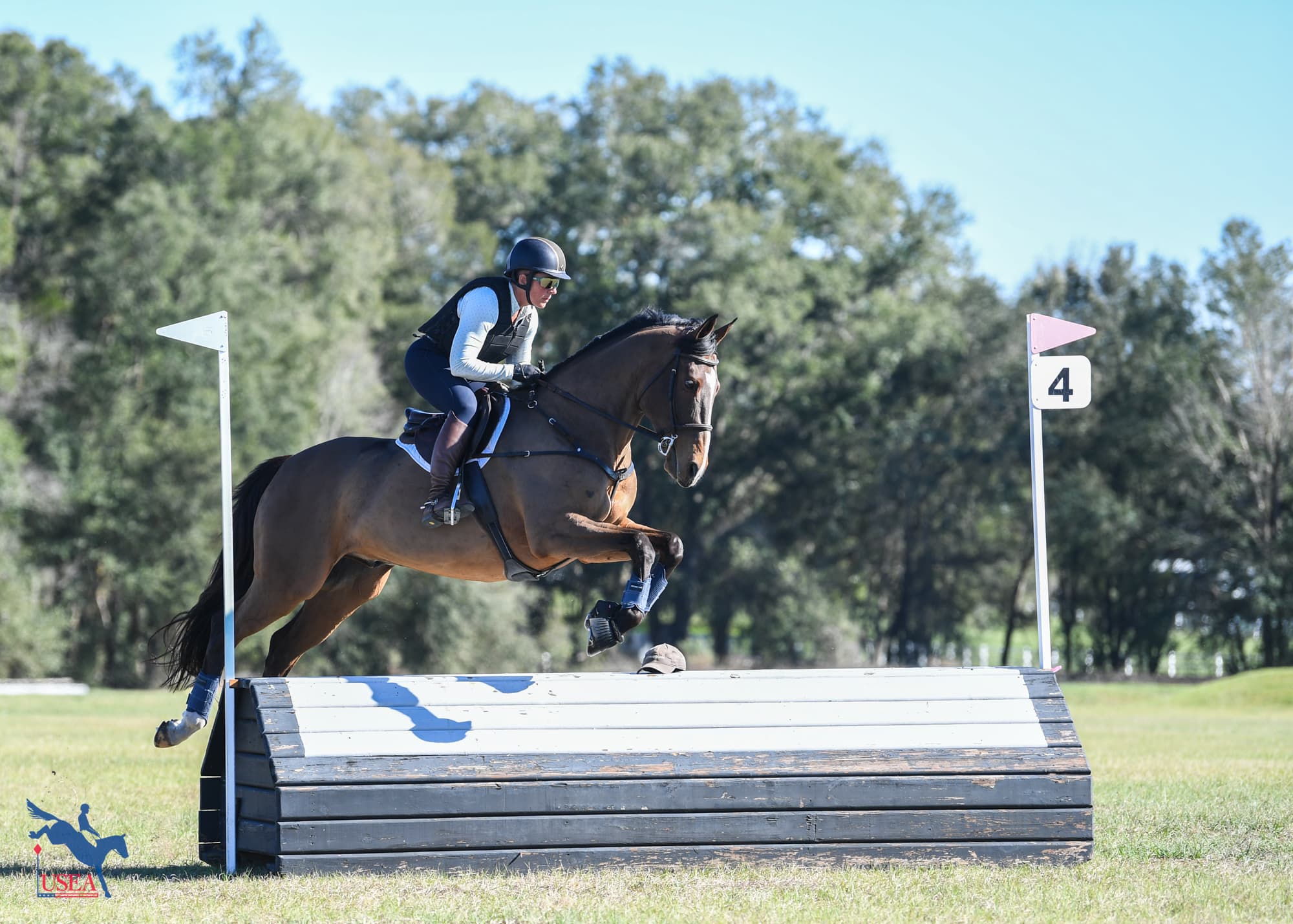 O’Connor coached her and had her “walk, trot, pop” over a small log. She encouraged her to “row the boat” with her arms when riding any green horse towards a fence they might be unsure about and to give the mare plenty of time in a straight approach to see each jump since green horses think slower.