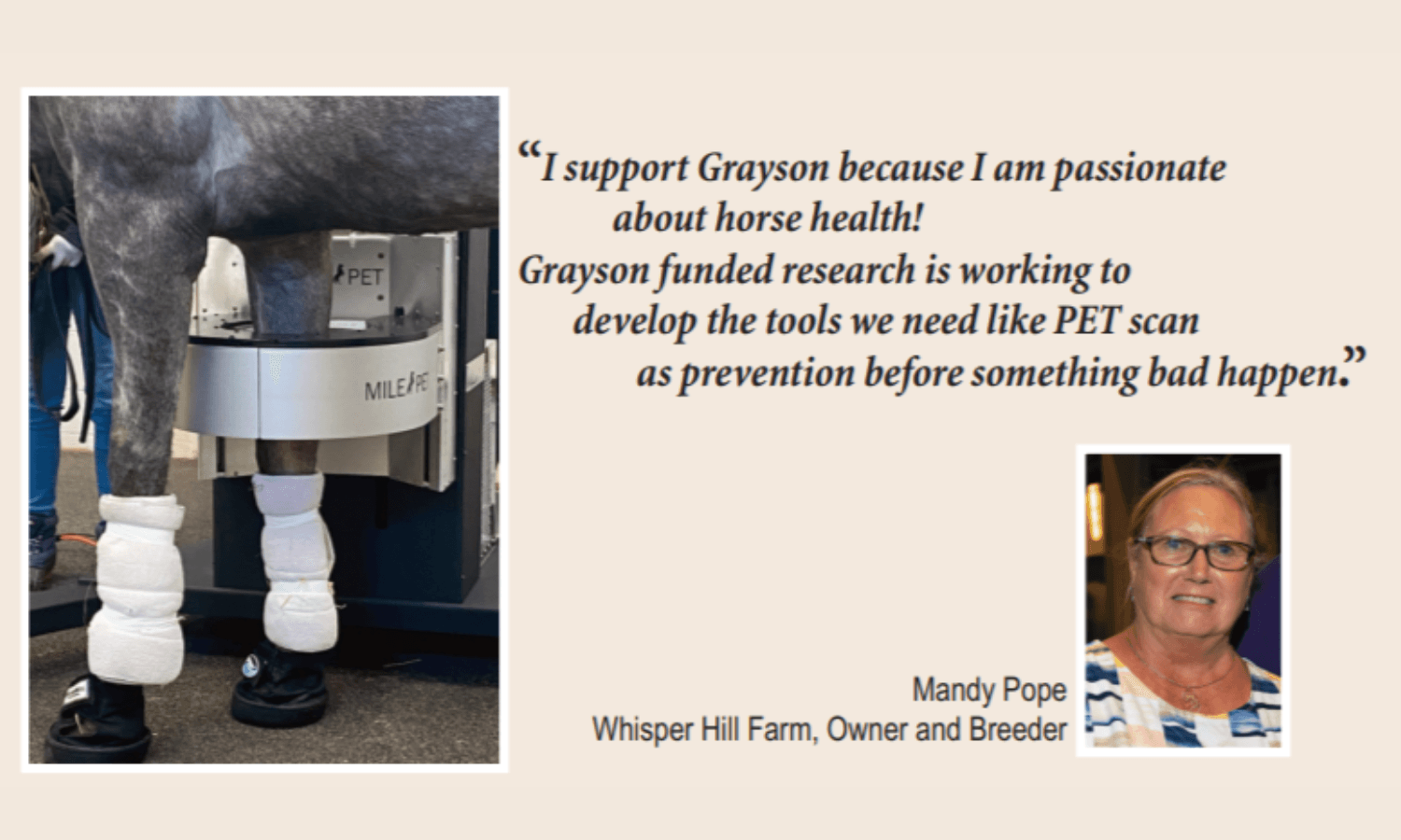 Dr. Mathieu Spriet is an Associate Professor of Diagnostic Imaging at the School of Veterinary Medicine at the University of California- Davis. In 2015, Grayson-Jockey Club Research Foundation funded the first research project that performed positron emission tomography (PET) scans on equine athletes.