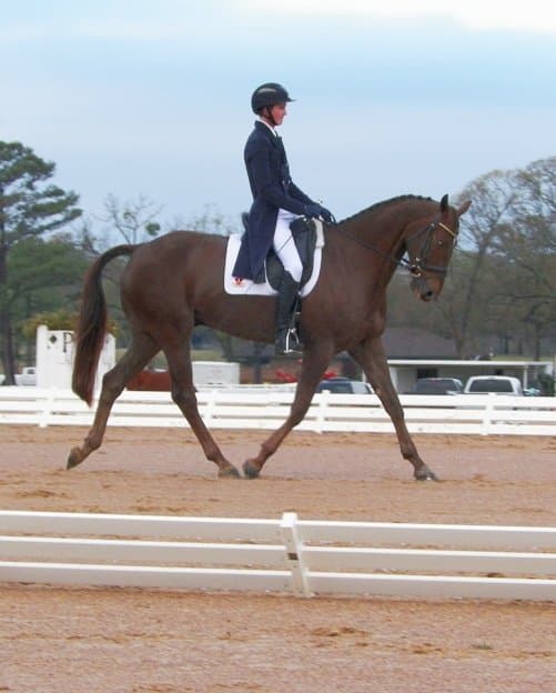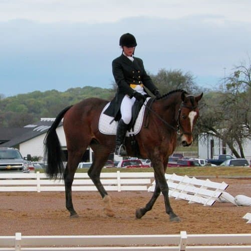 Ellen had originally planned to “do Florida” to reach her first Advanced this winter, but once the Texas Rose course-building was announced, changed her plan to come to Texas Rose instead. Ellen and Sir Oberon, a 9-year-old dark bay Thoroughbred gelding, have come a long way together since she found him four years ago in a small Texas town through a Dreamhorse.com ad, the horse having been lightly introduced to dressage and low jumping. She hopes to take Sir Oberon to Rebecca Farm in July, Richland Park in August, and Fair Hill this fall.