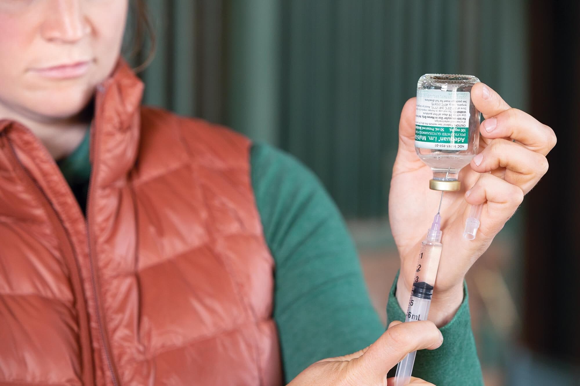 After all, what’s right for one horse might not be right for another—especially when it comes to older horses. “Those horses have hock issues, stifle issues, maybe a knee, and coffin joints,” said Robin Dabareiner, DVM, PhD, DACVS, who worked at Texas A&M for 23 years before working at Waller Equine Hospital in Texas. “And it’s just not efficient to inject multiple joints on an older horse like that. I think some of those tough old horses just need a little daily bute. I’ve had horses that have been on a gram of bute for years, and they can still go out there and do their job. And I strongly encourage the use of Adequan [i.m. (polysulfated glycosaminoglycan) for DJD] and have been impressed with the treatment response.”