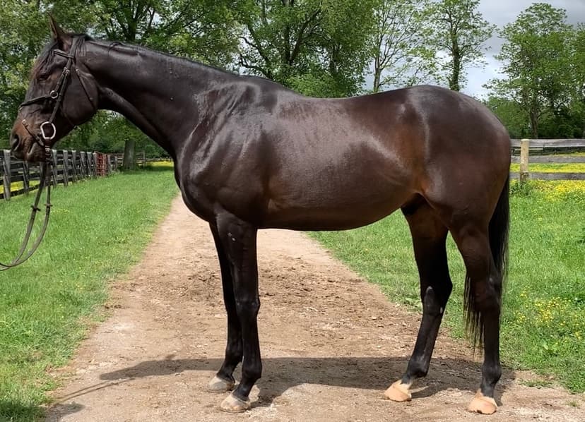 “This individual is all quality being full Thoroughbred,” Chris Ryan first observed about this 5-year-old off-the-track Thoroughbred gelding. “Some carry more refinement than others and this fellow is quite fine. He is short coupled. And, he is a lovely strong colour!”