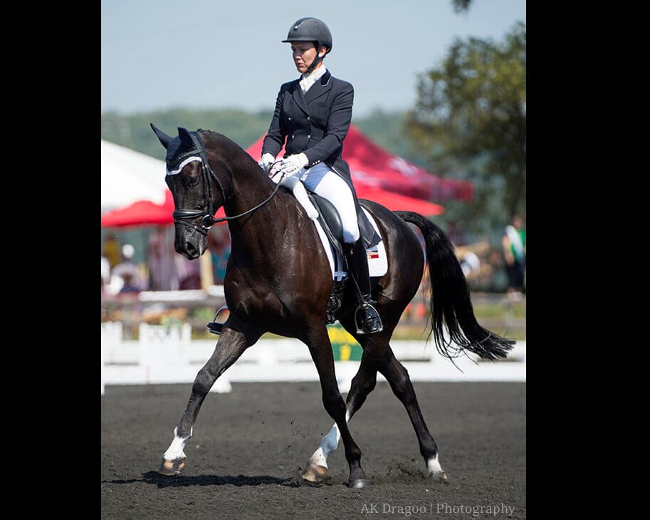 “He’s not a world class, fabulous mover, but he’s extremely steady and consistent,” Doug said of the now 8-year-old Thoroughbred/Holsteiner gelding. “In the end, he’s very correct and throughout the test he remained relaxed and obedient and I couldn’t have asked a whole lot more of him.”