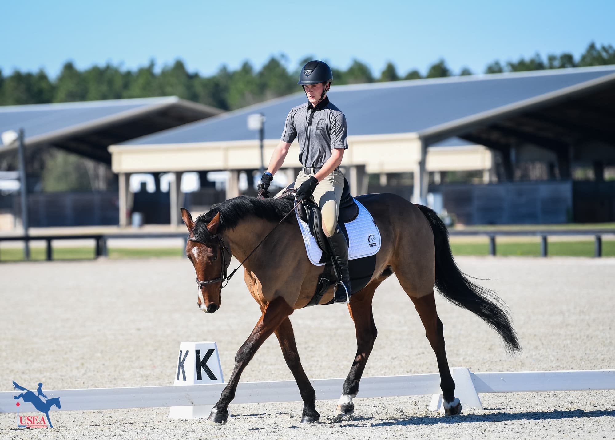 “With lower-level horses I encourage my students to stay out of the corner and show bend,” he continued. “The further up the levels in competition you go, there’s an expectation of collection and that the horse has the power and balance to go deeper into the corner. But not at Beginner Novice, Novice, and Training. Round off the corner and show bend.”