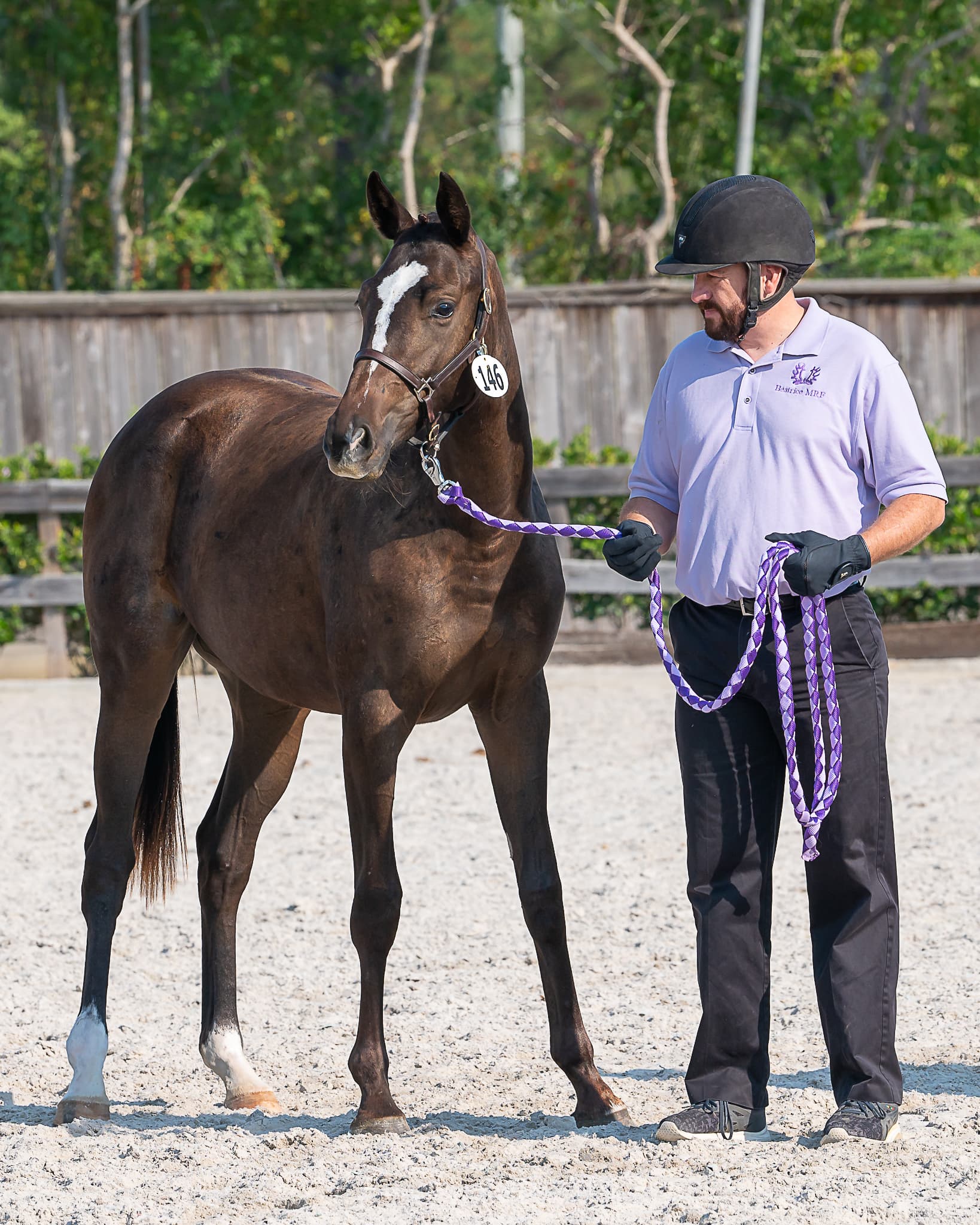 Placing Reserve Overall Yearling and Champion Yearling Colt with a 76.9, was Paige Clement's Irish Draught Sport Horse gelding, Summerhill Falkor Draconus (T F Classic Twist x Tully Macs Lady Hawk), bred by Cristi & Tommy Flynn of Summerhill Farm in Belton, Texas. Clements and her wife Bobbie purchased “William” in-utero two months prior to his due date. William earned his namesake as he was born on the day that both Paige and Bobbie had the once-in-a-lifetime opportunity to clinic with William Fox-Pitt.