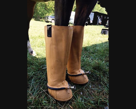 Don’t forget about the feet! For horses who don’t have pads in their front hooves, packing their feet is essential especially in the summer months when the dry ground can cause a lot of concussion. There are many pre-mixed hoof packing products, but a mix of Epsom salts and liniment in the hoof can do the trick just as well. Packing the feet can help remove heat and reduce the impact of heavy concussion from a gallop or cross-country.