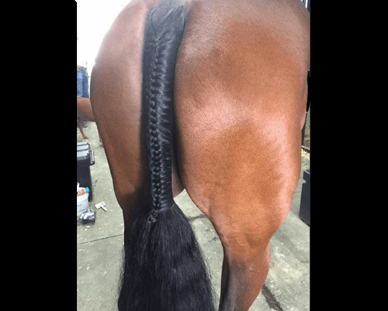 While the pulled or clipped tail is more popular in eventing, the braided tail is gaining popularity. A braided tail shows is a great option for showing off your horse's hindquarters, and gives a very polished look in the show ring. For those who prefer a natural tail, braiding may be a good option for you in competition. First things first - leave that tail alone! You'll need a full unclipped and unpulled tail. If your horse has previously had a trimmed tail, you need to be patient if you want to start braiding. A good 6-8 months or more is needed for the hair to grow out enough to French braid.