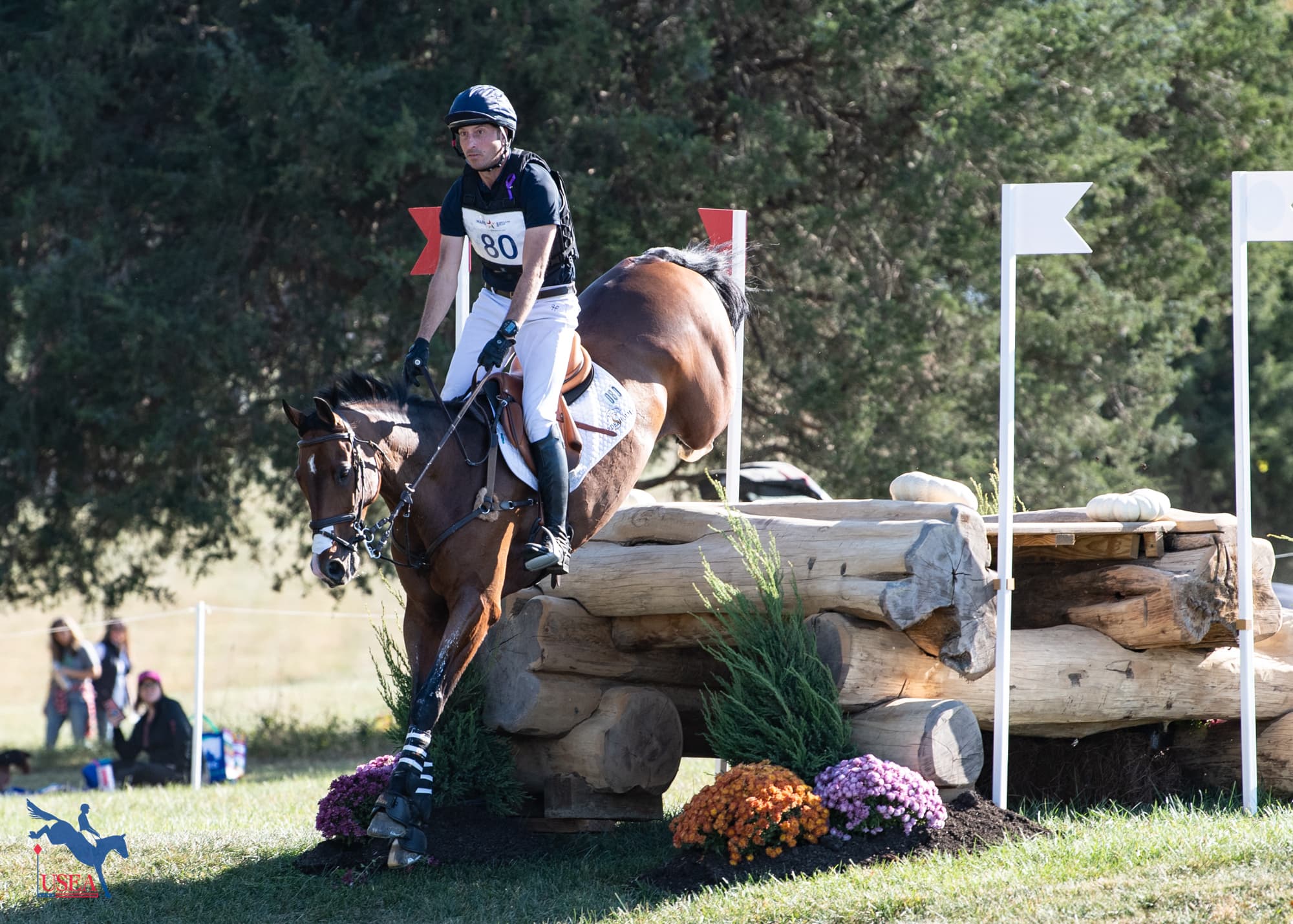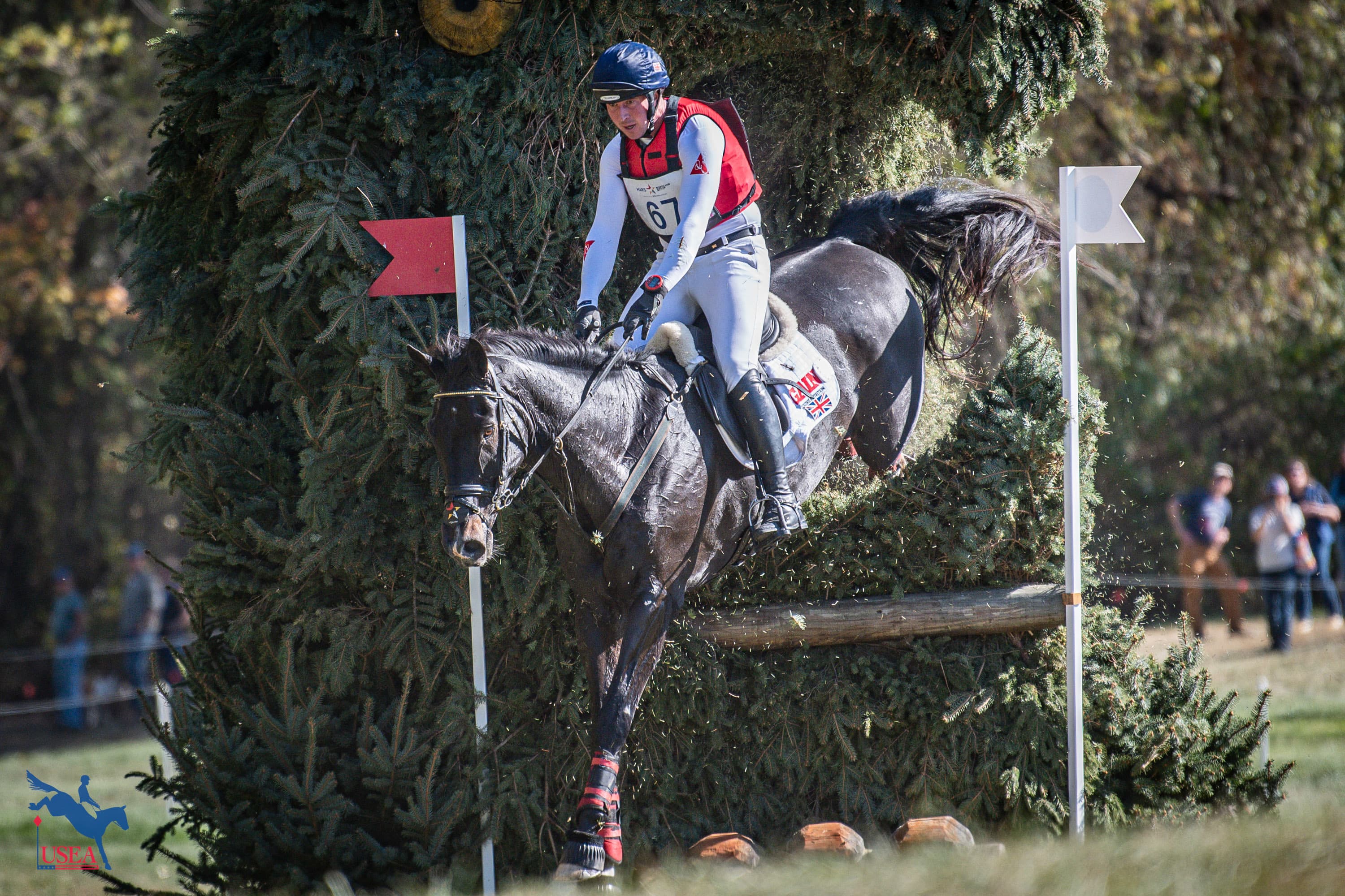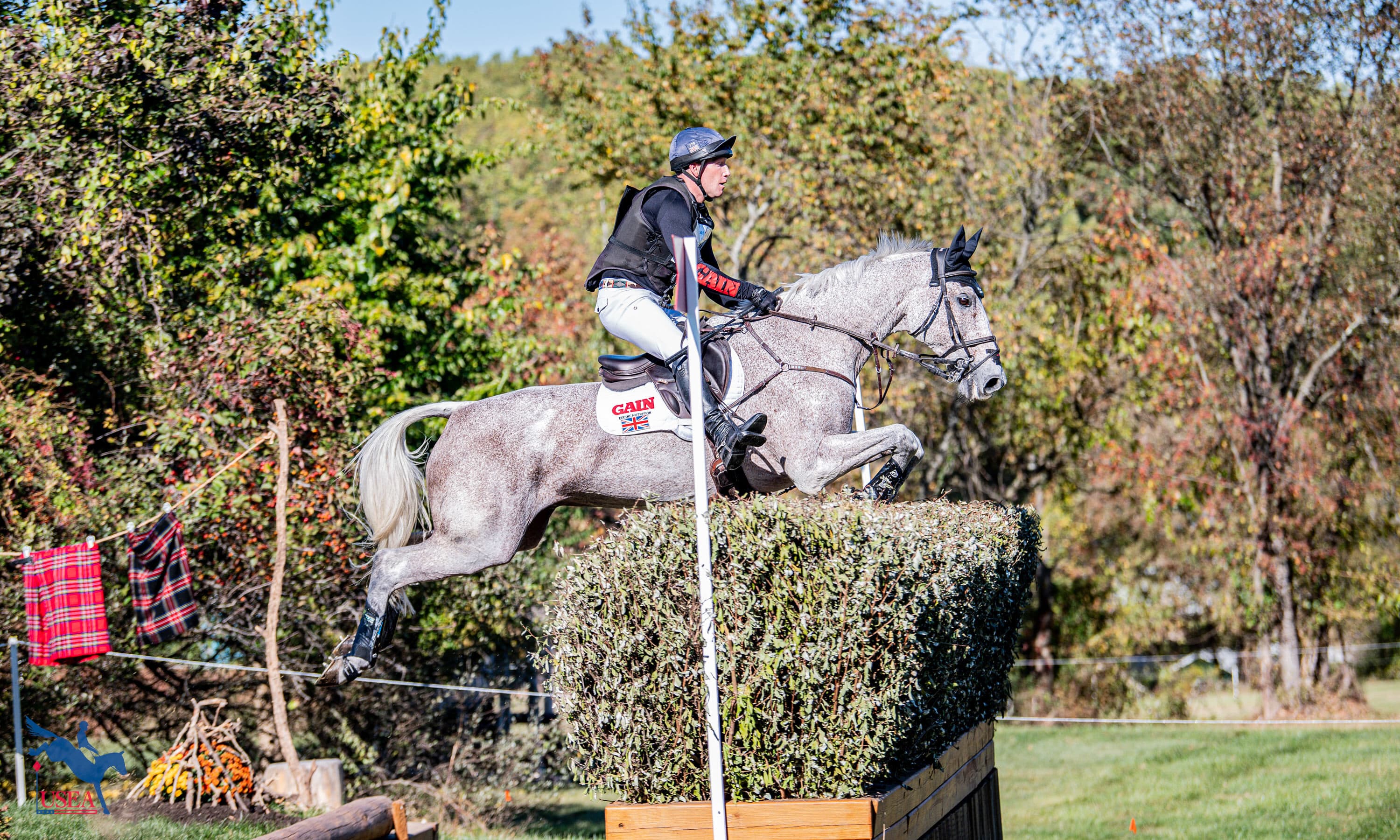 Elkton, Md.—Oct. 18—Ian Stark’s final five-star cross-country course at the MARS Maryland 5 Star proved to be the ultimate test on Saturday as the field of 22 was whittled down to eight throughout the afternoon. Oliver Townend (GBR) and Ballaghmor Class (Courage II x Kilderry Place) sailed around adding just 4.8 time penalties to their score to slide into the lead on a score of 31.3.