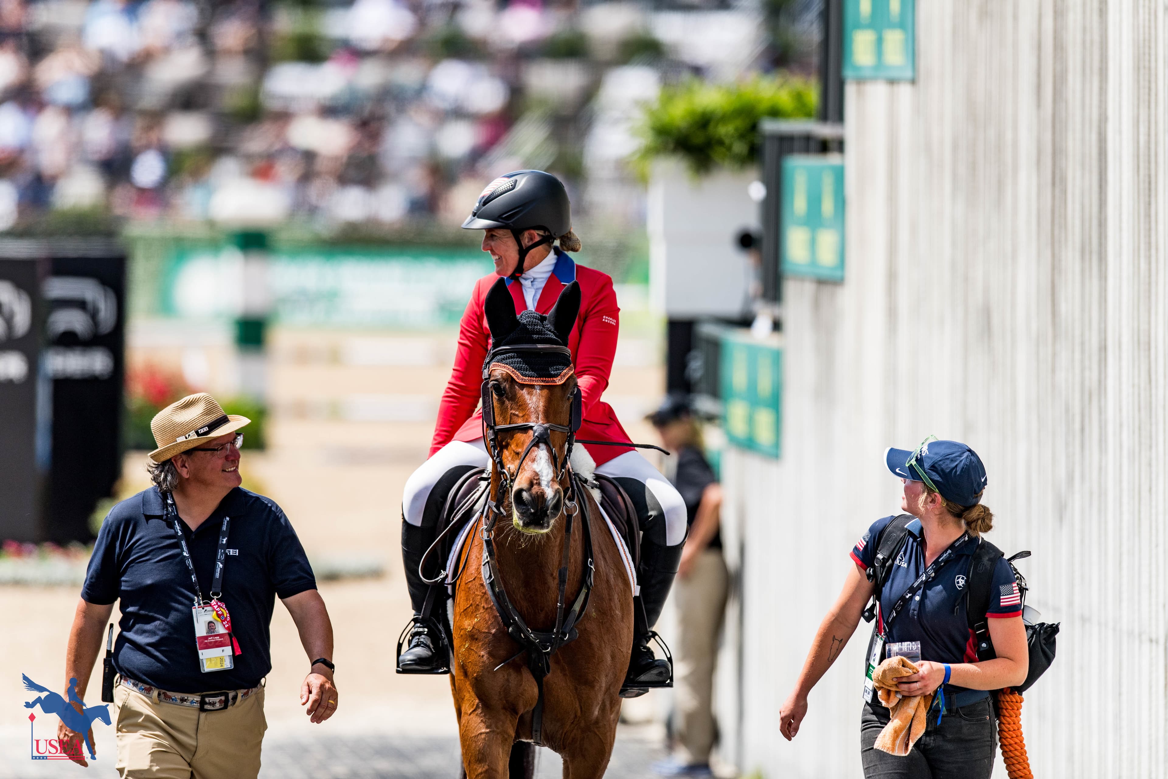 “I think overall he jumped super today, just had a really unlucky rub on an oxer,” she said. “Overall, I’m delighted with him. It wasn’t our day, and everything happens for a reason, and I’ll come out stronger next time. I’m absolutely delighted with him from the beginning of the week until today. It’s really exciting to be on the podium at a five-star in a very important year.”
