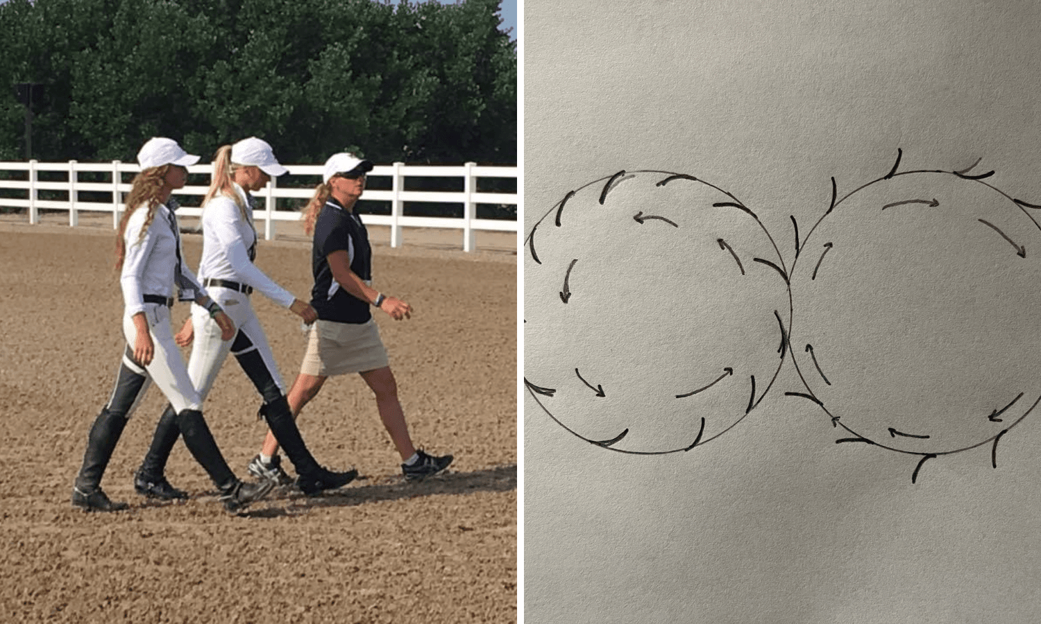 For Beshear, serpentines and figure eights serve a similar purpose in the flatwork for teaching riders feel and building on basics. “If I want the rider to feel how to turn [their horse] more from their seat and their leg and not just turn their head, I’ll do something like that. A figure eight can help the rider understand how to keep the horse essentially positioned in one direction, just slightly looking in one direction, but be able to make the same size and shape circles at walk, trot, and then at the higher levels, canter. It’s a great way to teach people how to feel a horse’s balance and positioning before they start to counter canter.”
