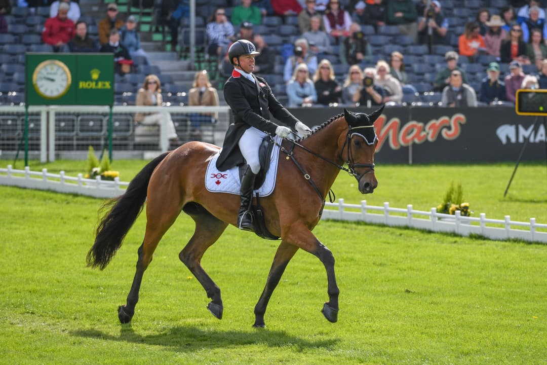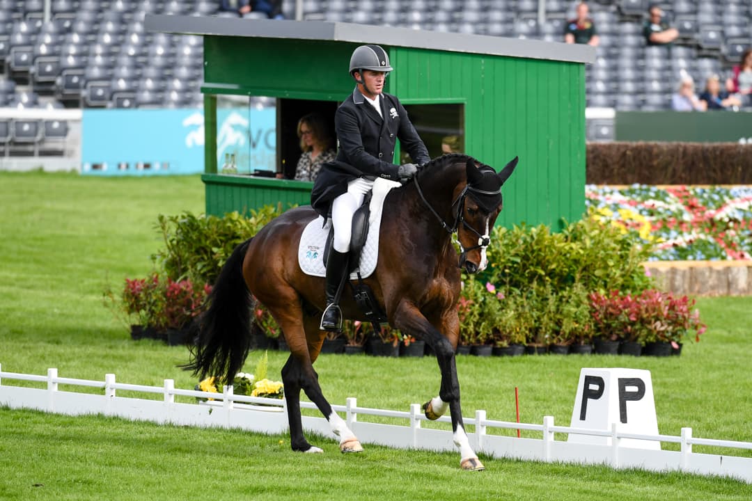 Oliver Townend, the remaining member of Britain’s gold medal-winning Olympic team, is tied for sixth on 25.7 with Paul and Diana Ridgeon's 14-year-old Irish Sport Horse gelding Swallow Springs (Chillout x Killila) with 2019 Badminton winners Piggy March and the 17-year-old Irish Sport Horse mare Vanir Kamira (Camiro de Harr Z x Fair Caledonian) owned by Trevor Dickens. Townend's 2017 Burghley hero and Tokyo partner the 15-year-old Irish Sport Horse gelding Ballaghmor Class (Courage II x Kilderry Place), owned by Karyn Shuter, Angal Hislop, and Val Ryna, is tied for eighth with a score of 25.9 in a phase he might have been expected to lead.