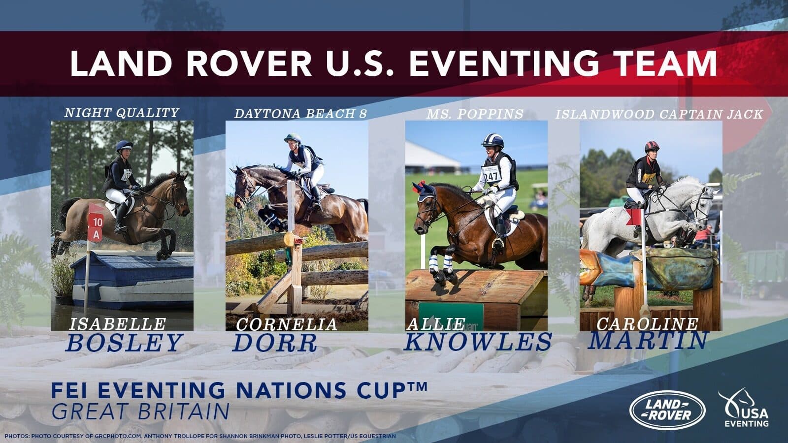 The following combinations have been selected to represent the Land Rover U.S. Eventing Team and are listed in alphabetical order.