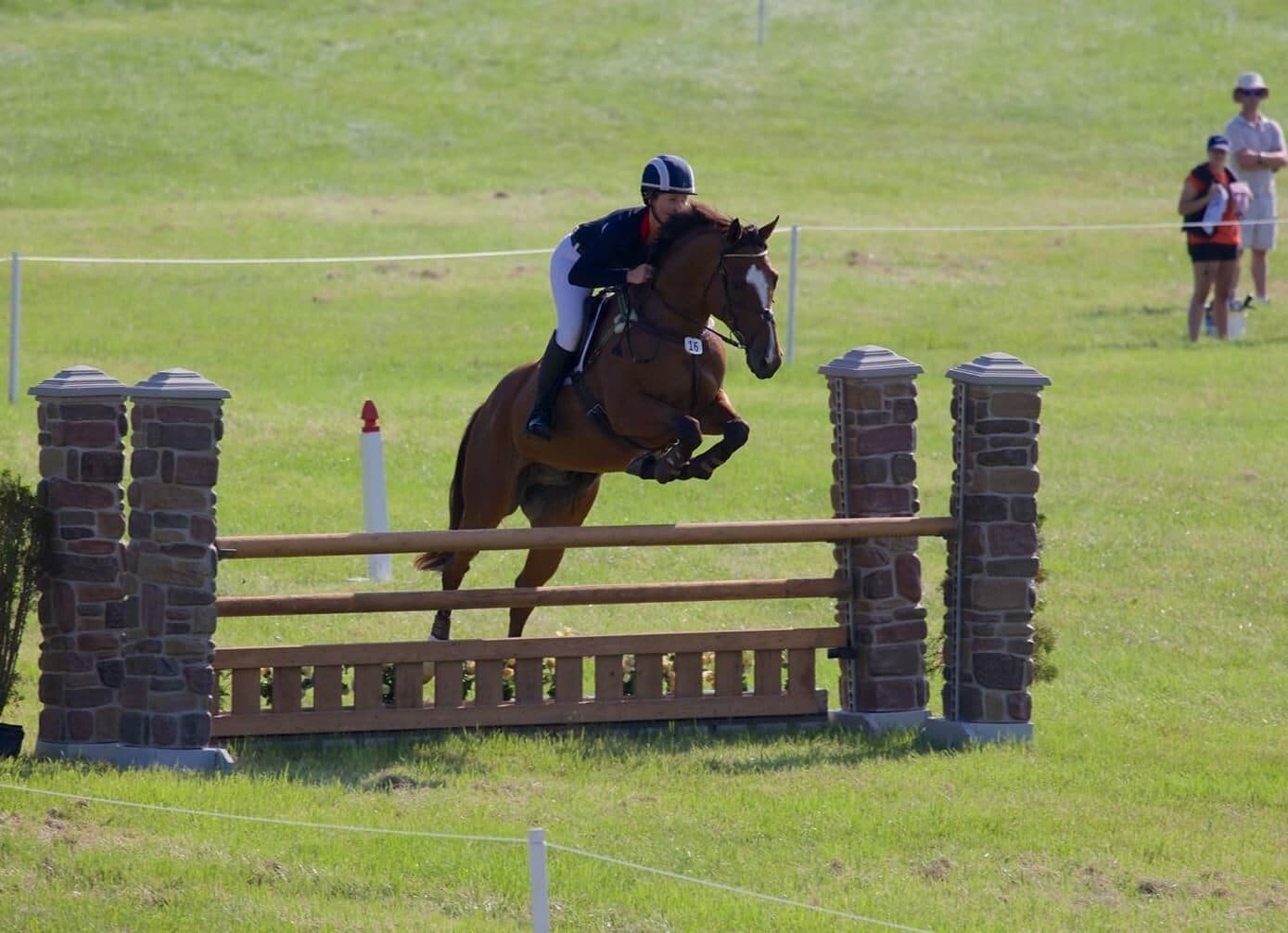 The cross-country courses still run on the same land they were held on for the first time in 1954, and remnants of those first courses can still be seen around Nations Farm. “I think that it’s a particularly open, galloping course with a nice amount of terrain in it, nothing terribly steep,” commented Thorne. “It’s just lovely to ride and perhaps not as technical a course as the ones you see now winding around themselves like a snake. We don’t have that, you’re just taking a big loop and that’s it; we have a lot of ground. We have natural water crossings and then we have a [traditional] water jump where the real jumping happens. From the patron’s tent you can see almost every single jump, even from the trailers you can see quite a lot. There’s an amphitheater that’s natural where we do the show jumping, so I think it’s just really nice and a little bit old-style.”
