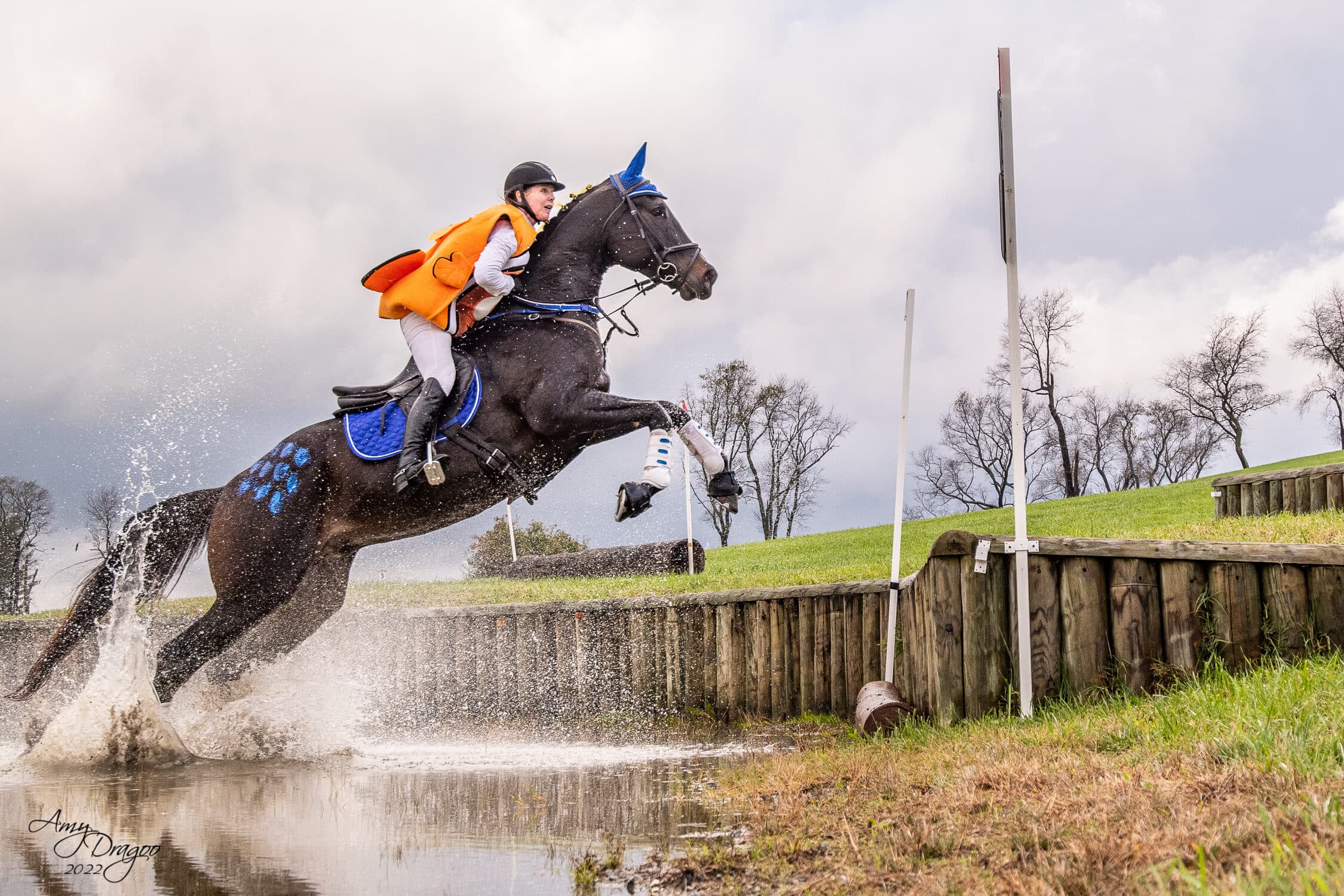 I purchased him as a 4-year-old and it is truly a match made in heaven. While I grew up working for lessons in a hunter/jumper barn and had previously started a couple of rescued Thoroughbreds under saddle, I have focused most of my time and energy on my career and family and Fish is my first horse! I am a veterinarian and I’ve always loved Thoroughbreds. I simply couldn’t have found a better partner than Fish. In addition to being an exceptional athlete who covers for my mistakes, he hacks out by himself and tolerates my crazy not-so-horse-savvy chocolate Labs. He just has the best brain and entertains us all with his loud snoring while napping in the barn.